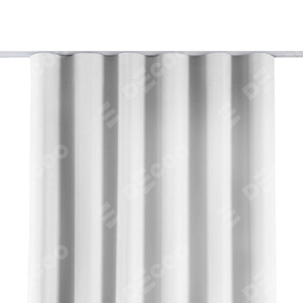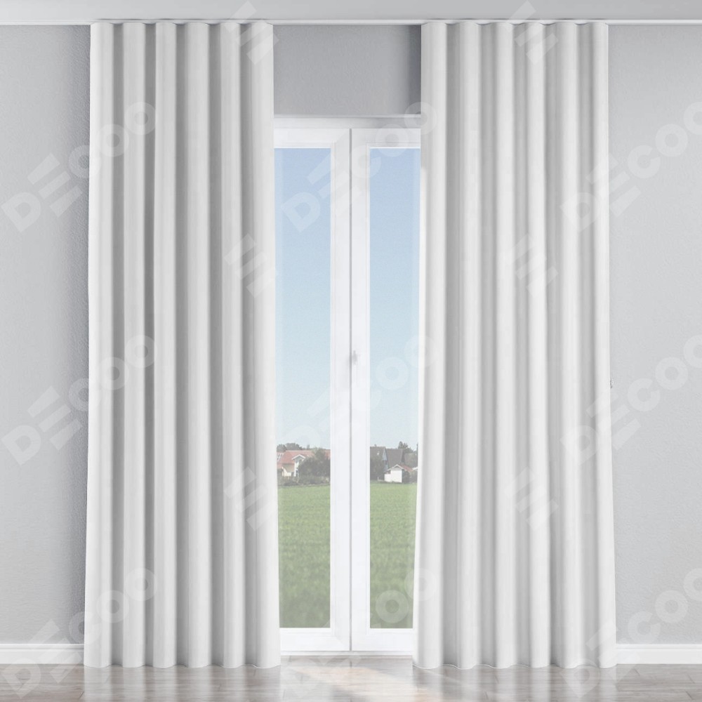 Комплект прямых штор, от производителя «Cortin», пошиты из ткани однотонная белоснежная, артикул ткани 41217. С изнаночной стороны в верхней части штор пристрачивается шторная лента с декоративными складками «Волна». Для создания элегантных складок прямые шторы шьются по стандарту с коэффициентом 1:2 (на 100 см. ширины проёма 200 см. ширины ткани).
