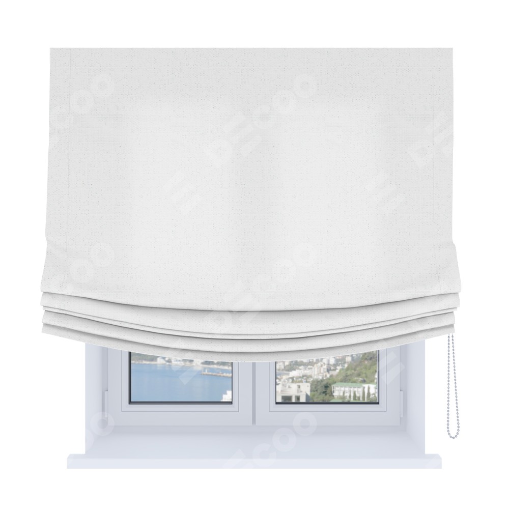 Римская штора Soft производителя «Cortin», используется для проёма, пошита из ткани лён белый, артикул ткани 7439. Имеет универсальный механизм и подходит для монтажа: на потолок, на стену и в нишу. В отличие от стандартных римских штор, римская штора Soft не имеет горизонтальных вставок и нижнего отвеса. Это позволяет ткани произвольно драпироваться в свободные мягкие складки.