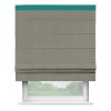 Римская штора производителя «Cortin», используется для проёма, пошита из ткани лён димаут cеро-зелёный, артикул 00003. Отделка шторы кантом «Кинг», ткань для канта используется из льна димаут разной расцветки на выбор. Имеет универсальный механизм и подходит для монтажа: на потолок, на стену и в нишу.