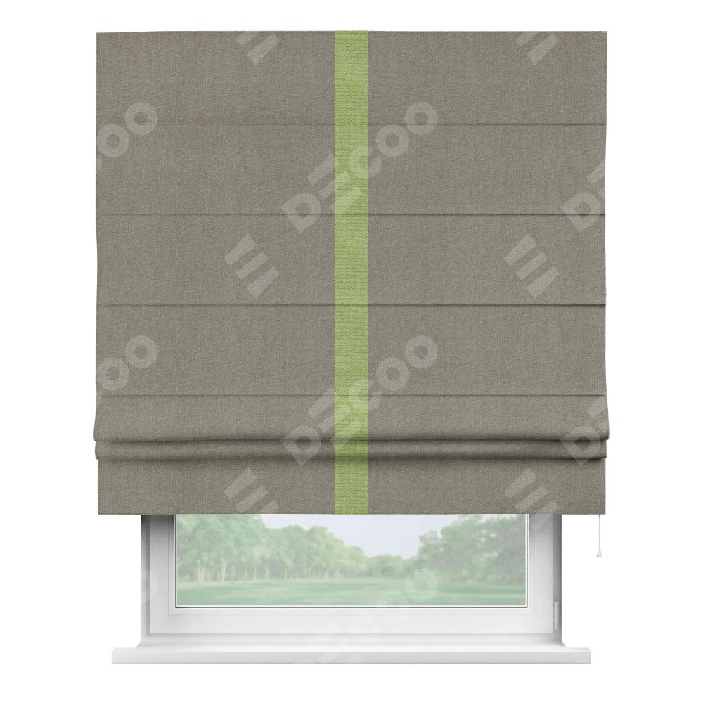 Римская штора «Кортин» с кантом Хайвэй, для проема, ткань лён димаут, серо-зелёный