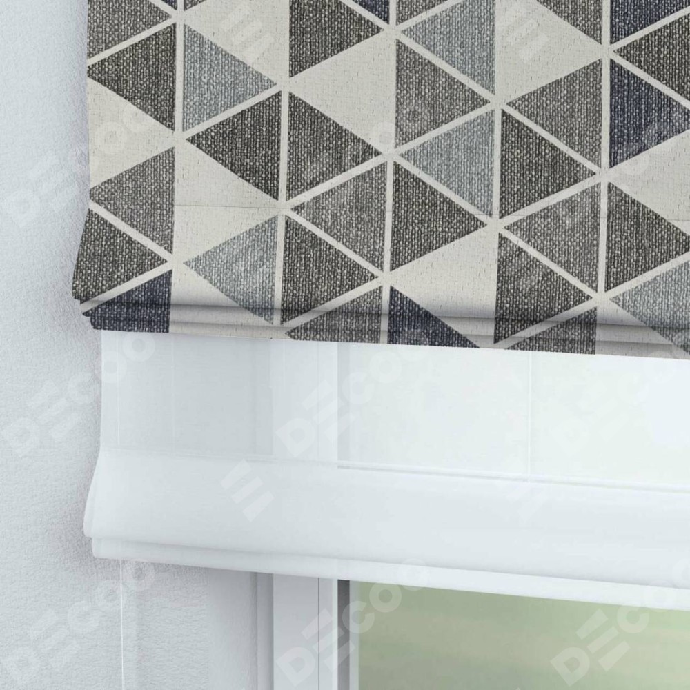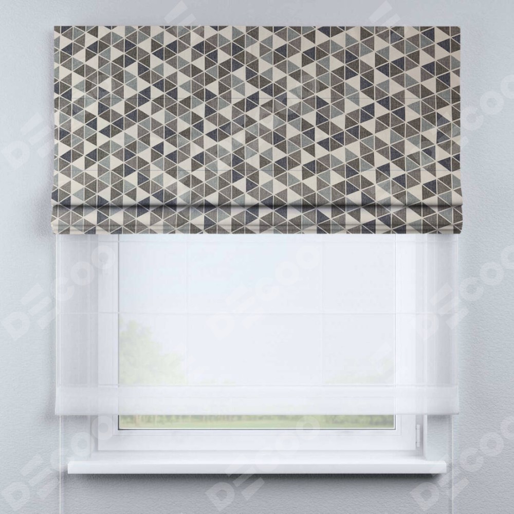 Римская штора «Кортин» день-ночь, ткань димаут «Треугольники синие»