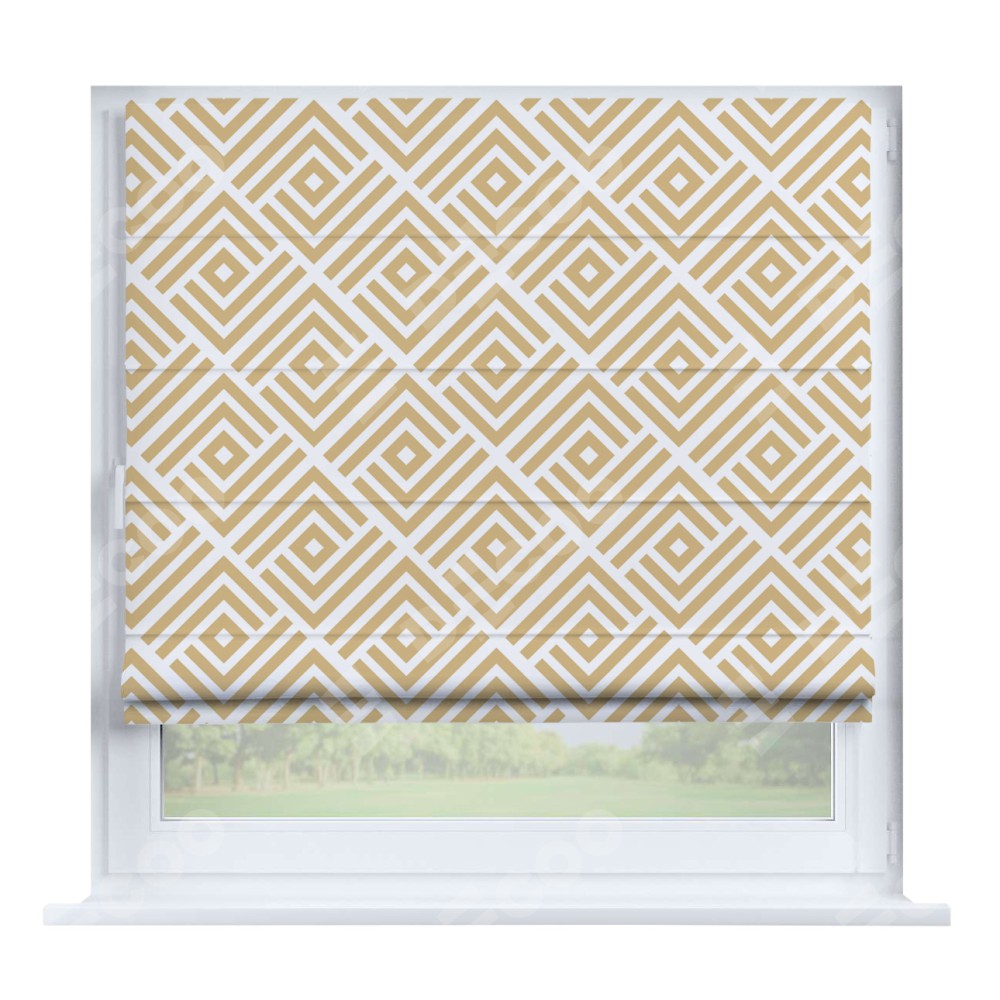 Классическая римская штора представляет собой полотно прикрепленное к карнизу, с обратной стороны полотна вшиты планки. С их помощь при сборе шторы образуются красивые горизонтальные складки.