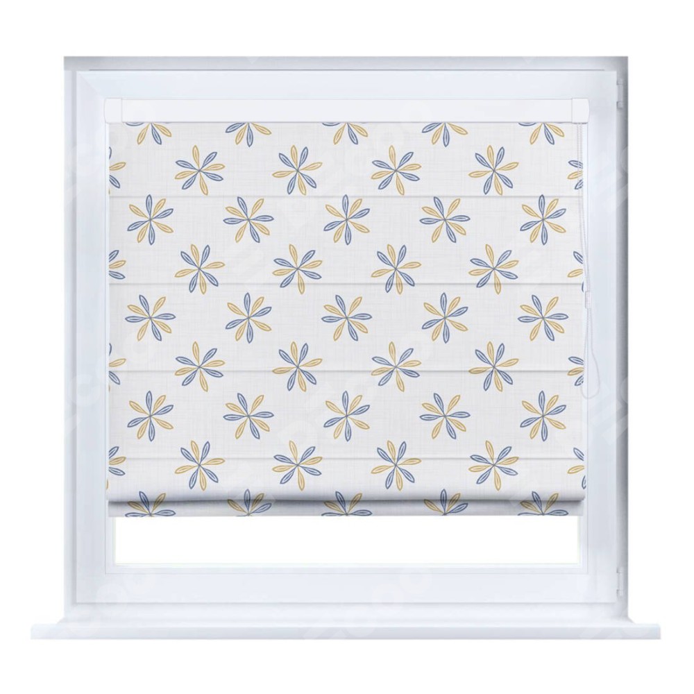 Римская штора производителя «Cortin», устанавливается на створку окна, пошита из ткани блэкаут с нанесением сублимационной печати «Ромашки кантри». Штора шьётся по индивидуальным размерам, для данного типа римской шторы возможная ширина от 35 до 150 см., высота до 250 см.