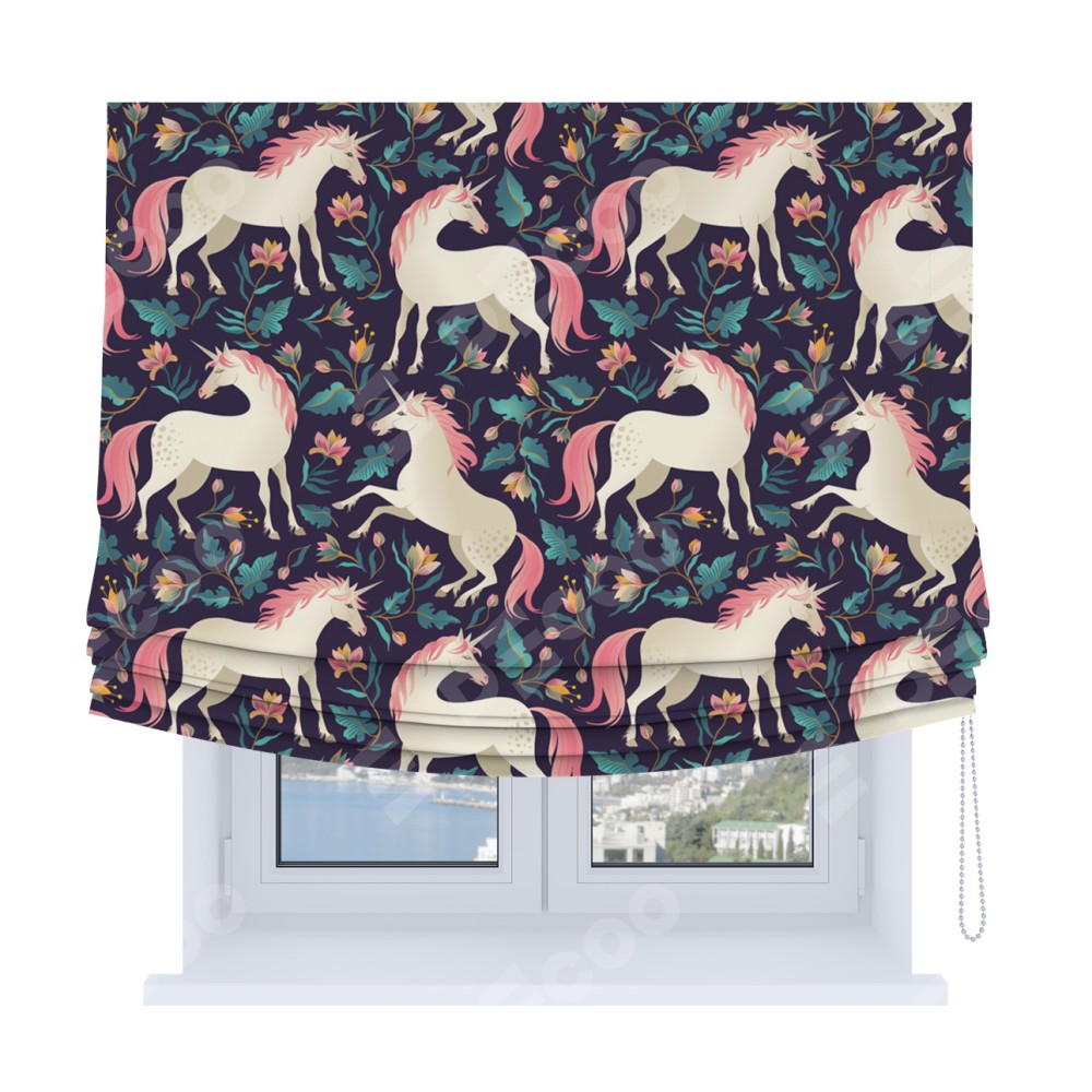 Римская штора Soft с мягкими складками, «Сказочные единороги»