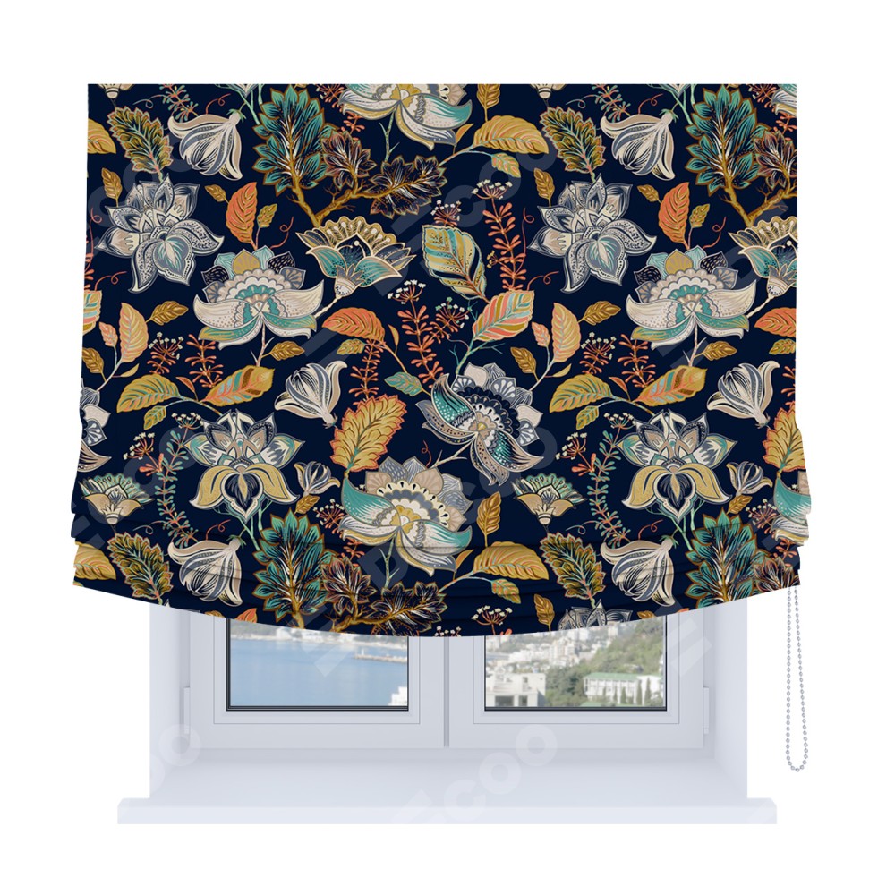 Римская штора Soft с мягкими складками, «Тёмный букет»