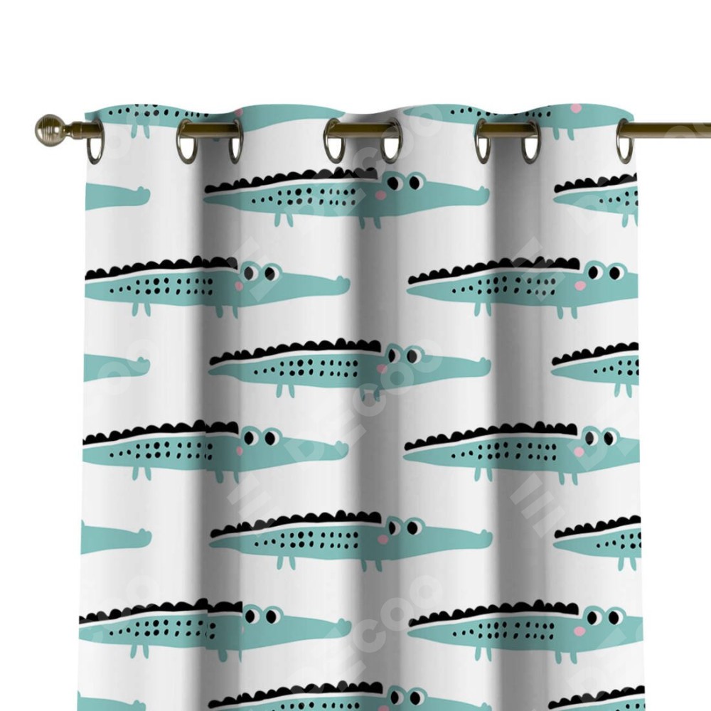 Комплект прямых штор, от производителя «Cortin», пошиты из ткани блэкаут с нанесением сублимационной печати «Мистер Крок». Данная модель пошита на люверсах, комплектуется на выбор круглым карнизом и подходит для монтажа на стену или потолок. Прямые шторы на люверсах шьются по стандарту с коэффициентом 1/2 (на 100 см. ширины проёма 200 см. ширины ткани), отличительным преимуществом данной модели является простой способ монтажа. Достаточно повесить ее на трубу и штора готова!