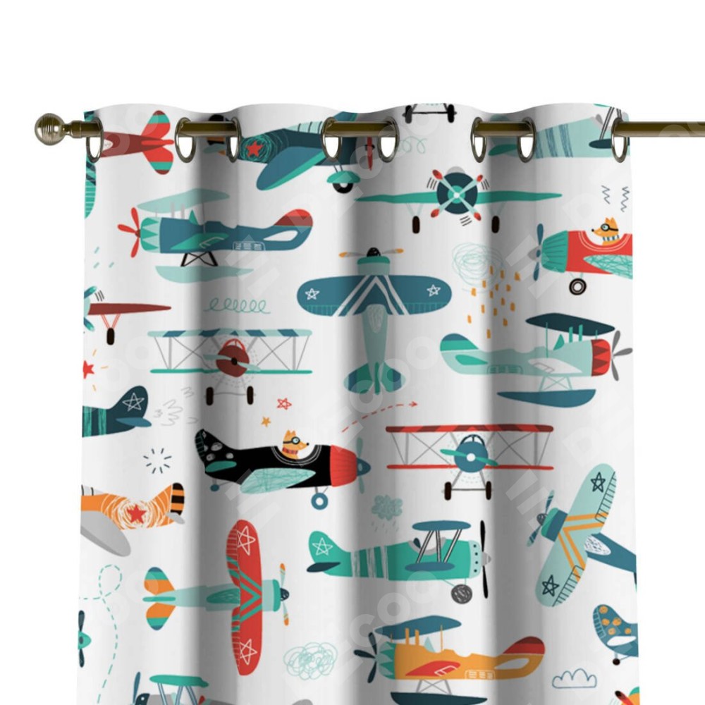 Комплект прямых штор, от производителя «Cortin», пошиты из ткани блэкаут с нанесением сублимационной печати «Самолёты и пилоты». Данная модель пошита на люверсах, комплектуется на выбор круглым карнизом и подходит для монтажа на стену или потолок. Прямые шторы на люверсах шьются по стандарту с коэффициентом 1/2 (на 100 см. ширины проёма 200 см. ширины ткани), отличительным преимуществом данной модели является простой способ монтажа. Достаточно повесить ее на трубу и штора готова!