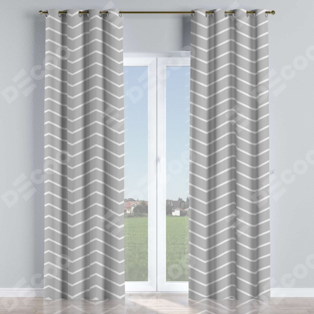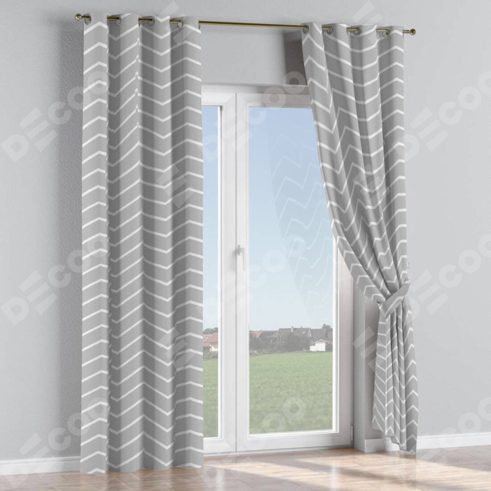 Комплект прямых штор, от производителя «Cortin», пошиты из ткани блэкаут с нанесением сублимационной печати «Серый зигзаг». Данная модель пошита на люверсах, комплектуется на выбор круглым карнизом и подходит для монтажа на стену или потолок. Прямые шторы на люверсах шьются по стандарту с коэффициентом 1/2 (на 100 см. ширины проёма 200 см. ширины ткани), отличительным преимуществом данной модели является простой способ монтажа. Достаточно повесить ее на трубу и штора готова!