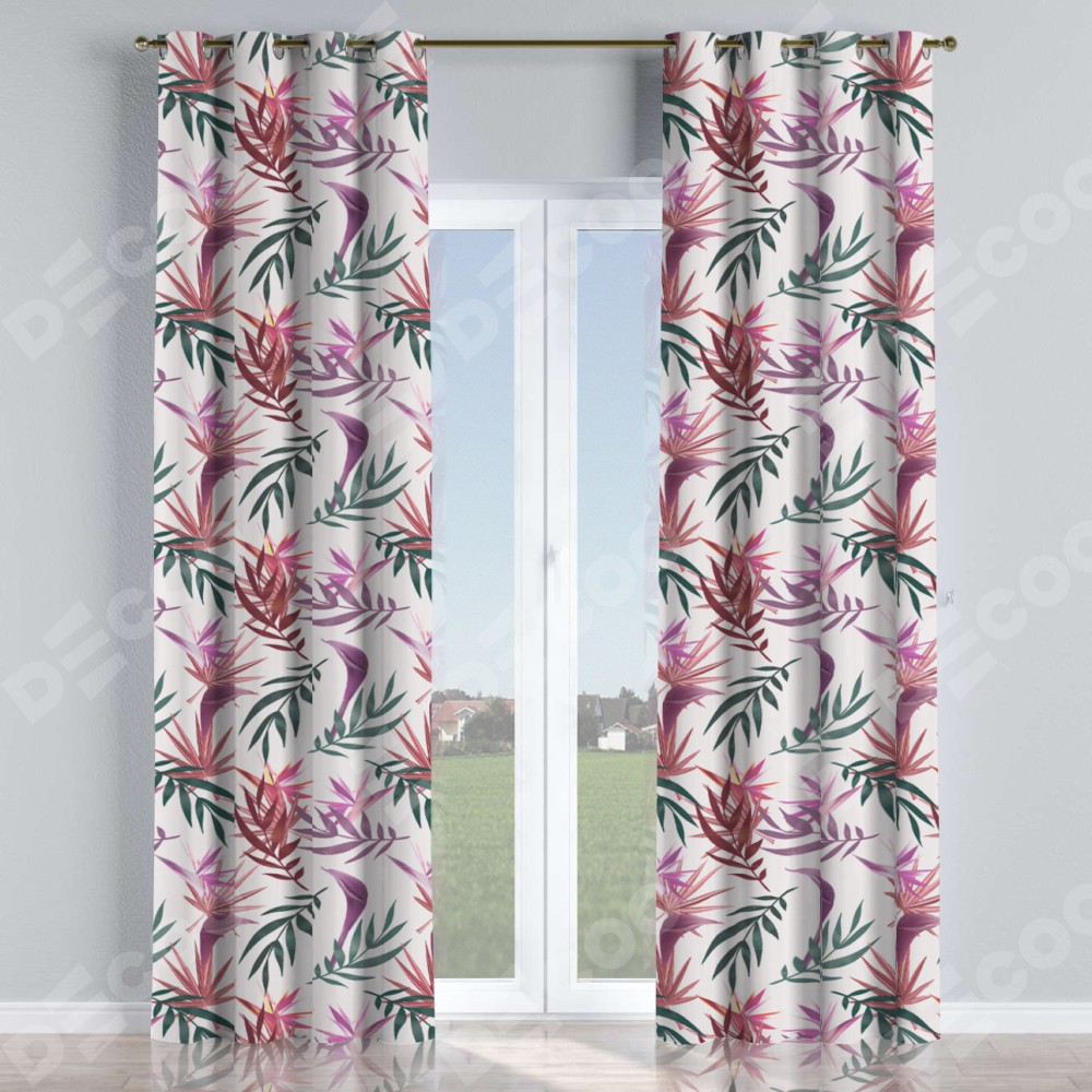 Комплект прямых штор, от производителя «Cortin», пошиты из ткани блэкаут с нанесением сублимационной печати «Тропические побеги». Данная модель пошита на люверсах, комплектуется на выбор круглым карнизом и подходит для монтажа на стену или потолок. Прямые шторы на люверсах шьются по стандарту с коэффициентом 1/2 (на 100 см. ширины проёма 200 см. ширины ткани), отличительным преимуществом данной модели является простой способ монтажа. Достаточно повесить ее на трубу и штора готова!