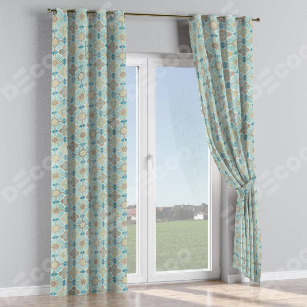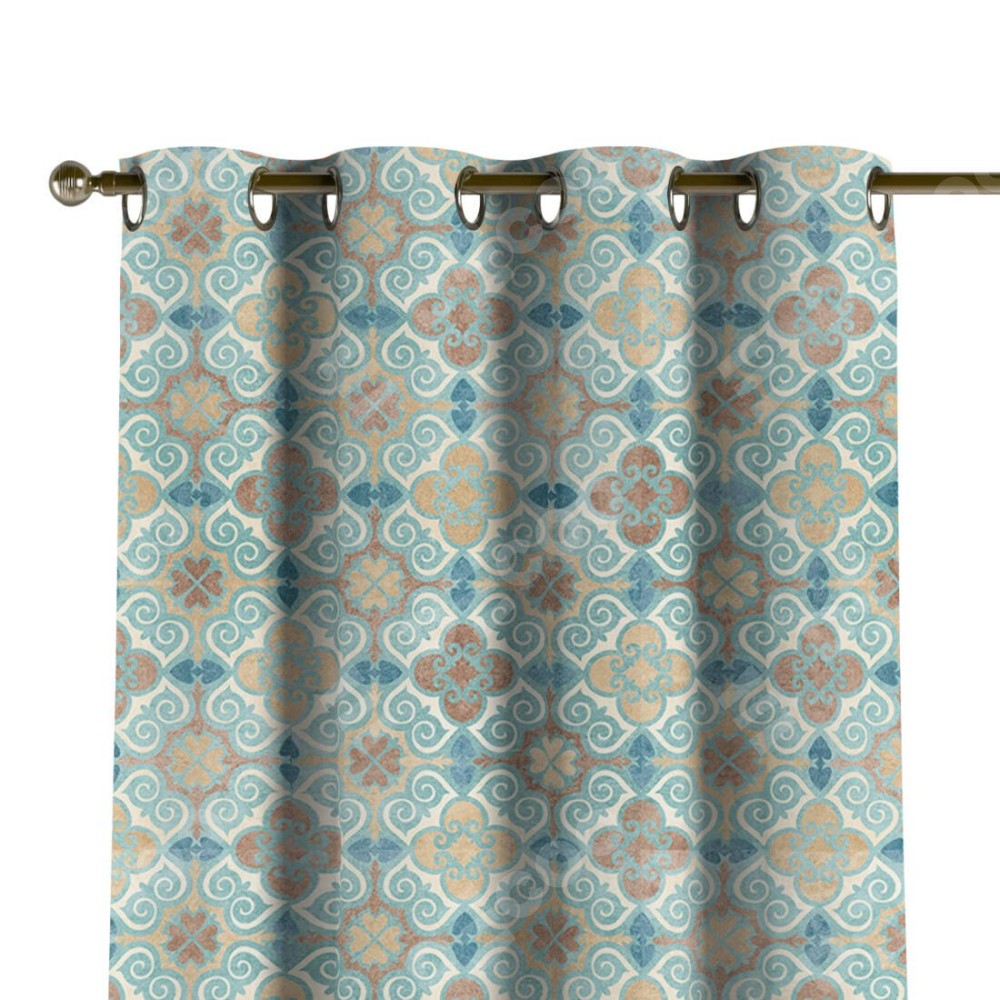 Комплект прямых штор, от производителя «Cortin», пошиты из ткани блэкаут с нанесением сублимационной печати «Фарида». Данная модель пошита на люверсах, комплектуется на выбор круглым карнизом и подходит для монтажа на стену или потолок. Прямые шторы на люверсах шьются по стандарту с коэффициентом 1/2 (на 100 см. ширины проёма 200 см. ширины ткани), отличительным преимуществом данной модели является простой способ монтажа. Достаточно повесить ее на трубу и штора готова!