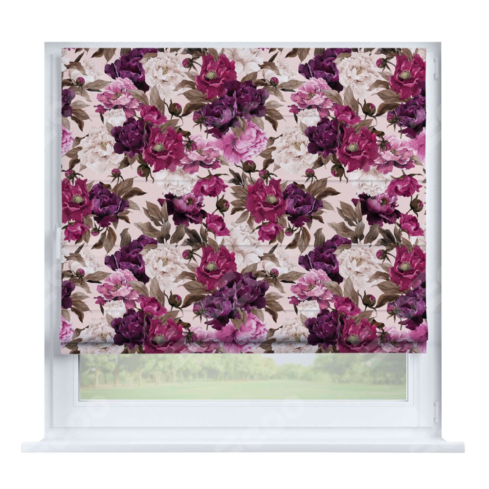 Римская штора «Кортин» на створку «Великолепные пионы»