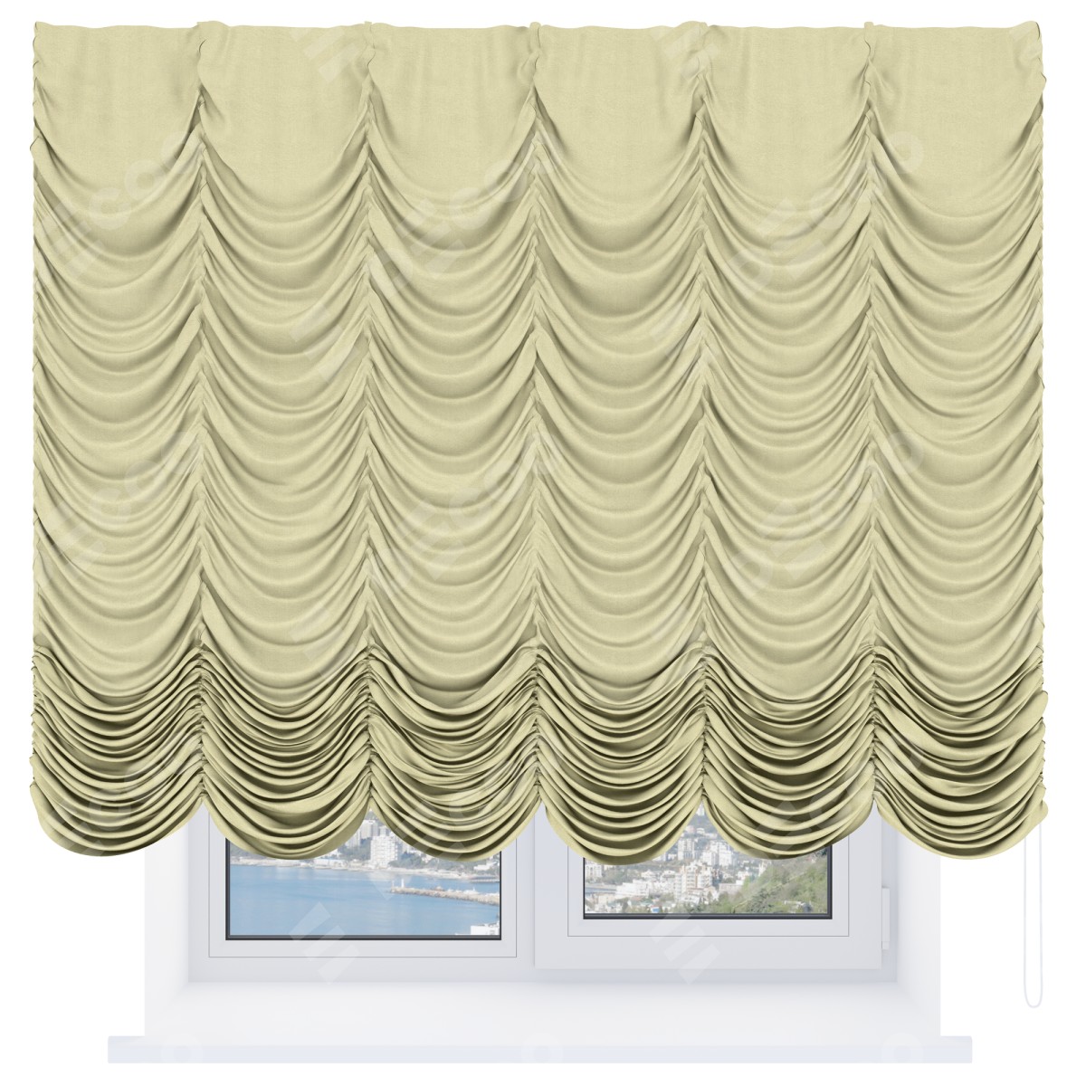 Французская штора производителя «Cortin», используется для проёма, пошита из ткани софт однотонный молочный, артикул ткани 11938. Имеет универсальный механизм и подходит для монтажа: на потолок и на стену.