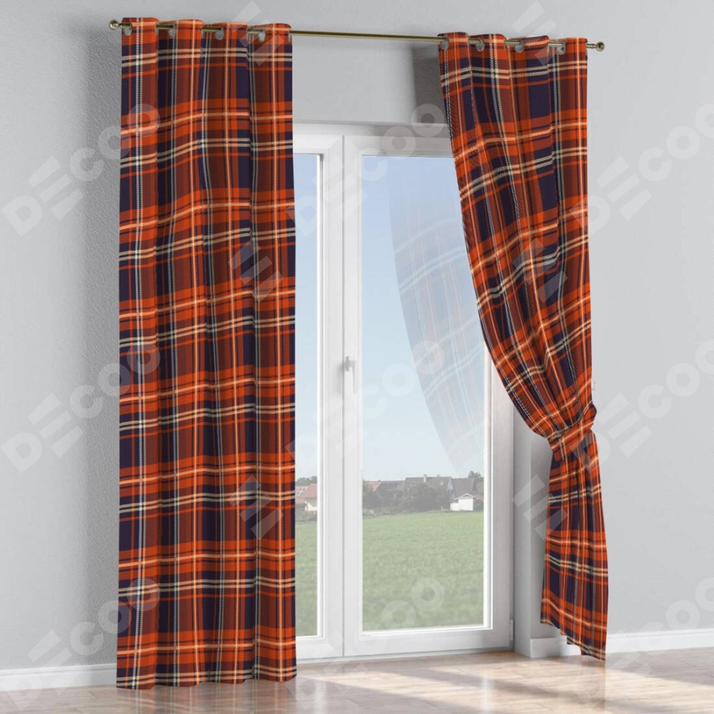 Комплект штор на люверсах «Сине-оранжевая клетка»