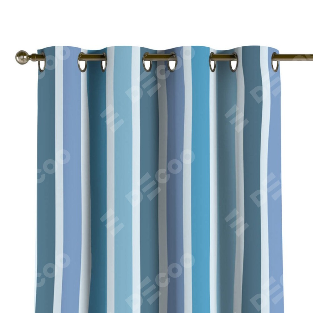 Комплект прямых штор, от производителя «Cortin», пошиты из ткани блэкаут с нанесением сублимационной печати «Сине-голубые вертикальные полоски». Данная модель пошита на люверсах, комплектуется на выбор круглым карнизом и подходит для монтажа на стену или потолок. Прямые шторы на люверсах шьются по стандарту с коэффициентом 1/2 (на 100 см. ширины проёма 200 см. ширины ткани), отличительным преимуществом данной модели является простой способ монтажа. Достаточно повесить ее на трубу и штора готова!