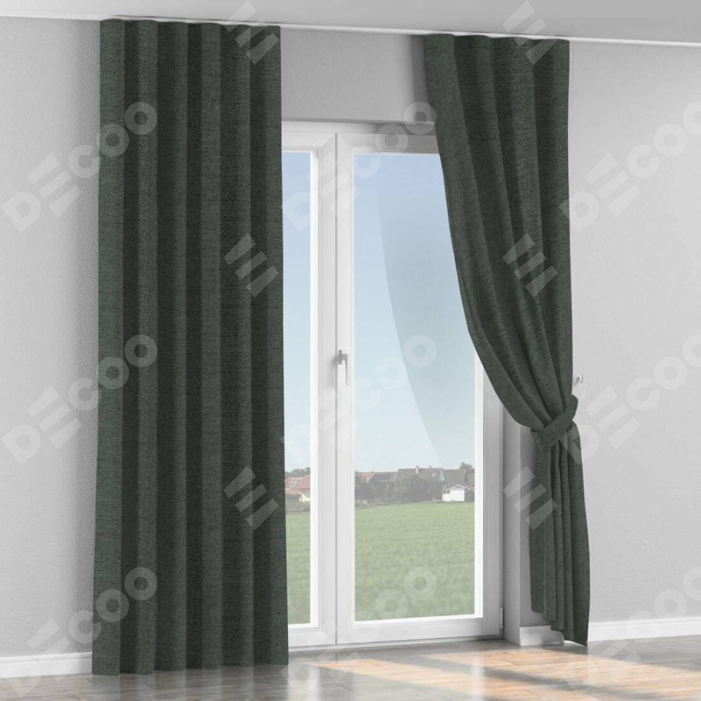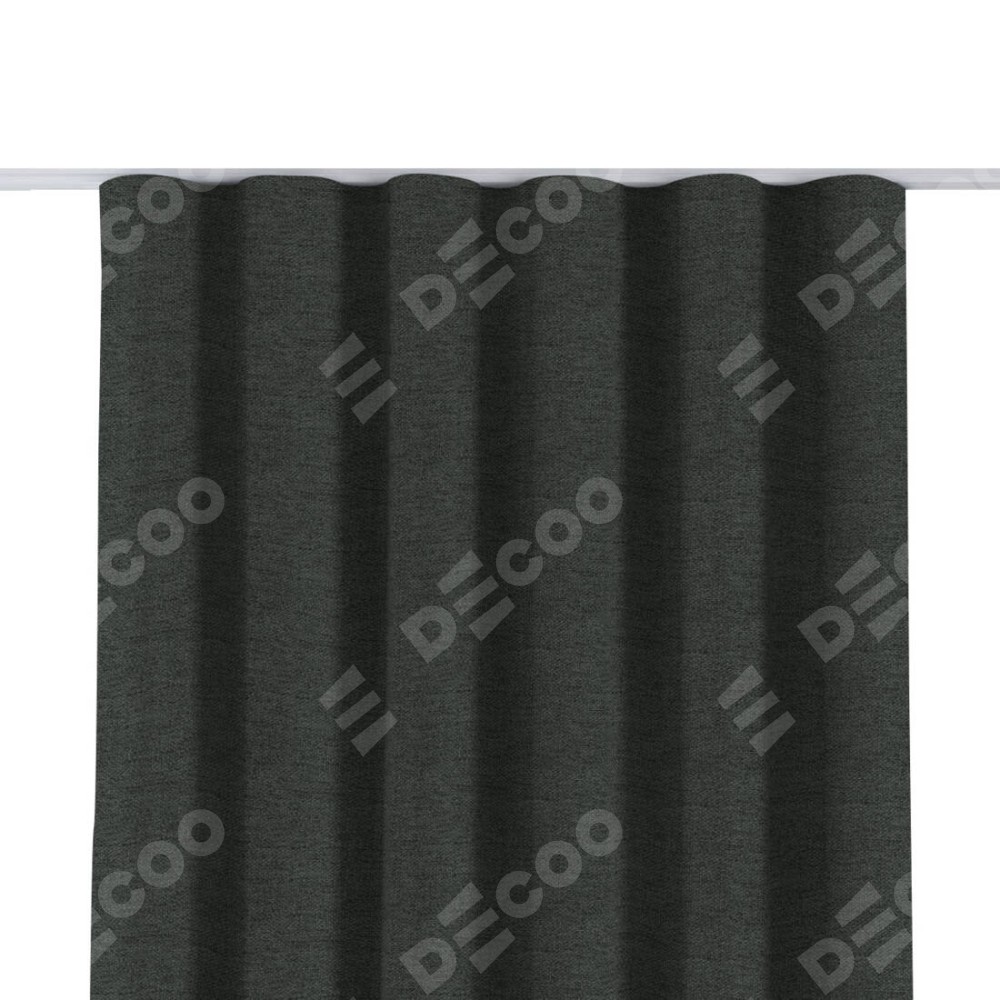 Комплект прямых штор, от производителя «Cortin», пошиты из ткани стиф димаут графит, артикул ткани 44026. С изнаночной стороны в верхней части штор пристрачивается шторная лента с декоративными складками «Волна». Для создания элегантных складок прямые шторы шьются по стандарту с коэффициентом 1:2 (на 100 см. ширины проёма 200 см. ширины ткани).