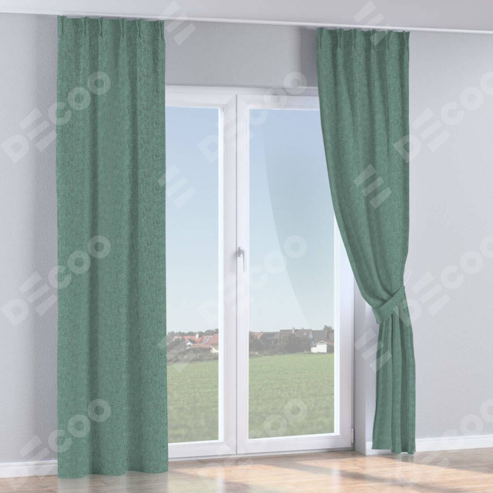 Комплект прямых штор, от производителя «Cortin», пошиты из ткани стиф димаут серо-голубой, артикул ткани 44029. С изнаночной стороны в верхней части штор пристрачивается шторная лента с декоративными складками «Кустик». Для создания элегантных складок прямые шторы шьются по стандарту с коэффициентом 1:2 (на 100 см. ширины проёма 200 см. ширины ткани).