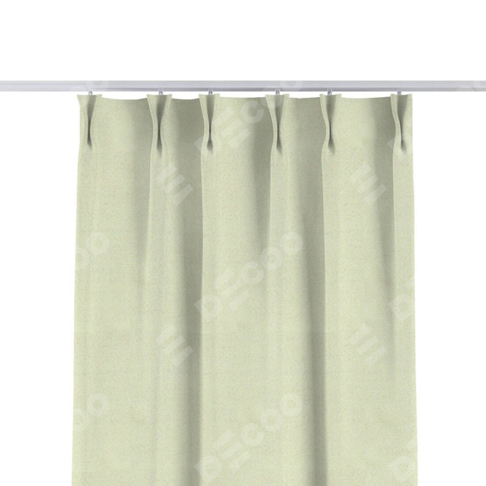 Комплект прямых штор, от производителя «Cortin», пошиты из ткани блэкаут однотонный сливочный, артикул ткани 6668−02. С изнаночной стороны в верхней части штор пристрачивается шторная лента с декоративными складками «Кустик». Для создания элегантных складок прямые шторы шьются по стандарту с коэффициентом 1:2 (на 100 см. ширины проёма 200 см. ширины ткани).