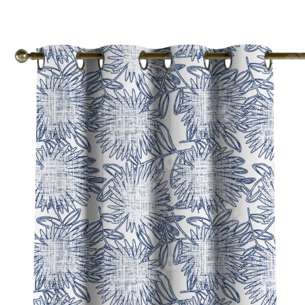 Комплект прямых штор, от производителя «Cortin», пошиты из ткани блэкаут с нанесением сублимационной печати «Синий букет». Данная модель пошита на люверсах, комплектуется на выбор круглым карнизом и подходит для монтажа на стену или потолок. Прямые шторы на люверсах шьются по стандарту с коэффициентом 1/2 (на 100 см. ширины проёма 200 см. ширины ткани), отличительным преимуществом данной модели является простой способ монтажа. Достаточно повесить ее на трубу и штора готова!