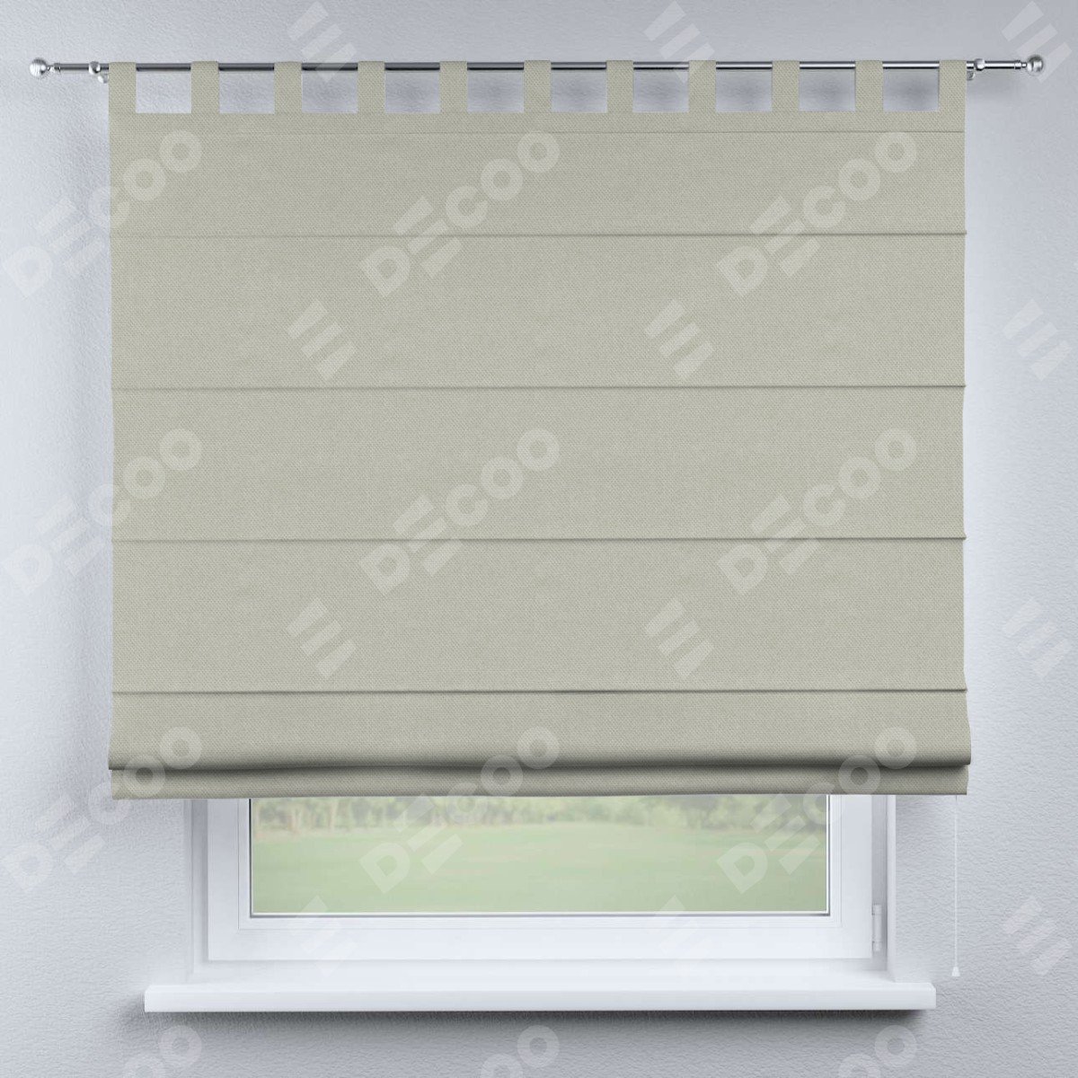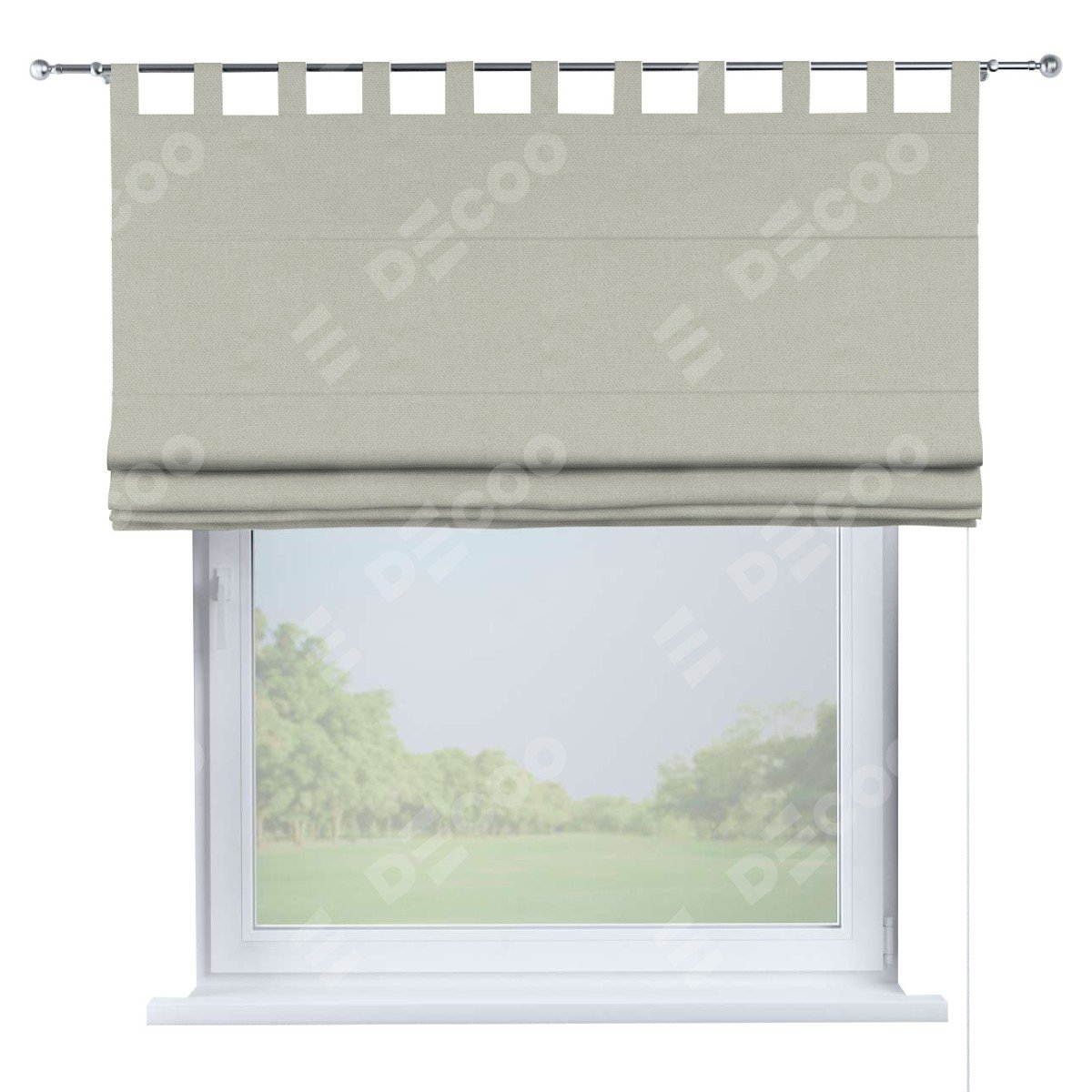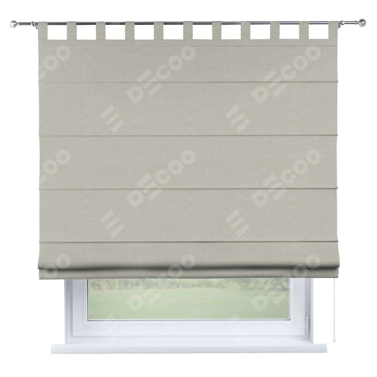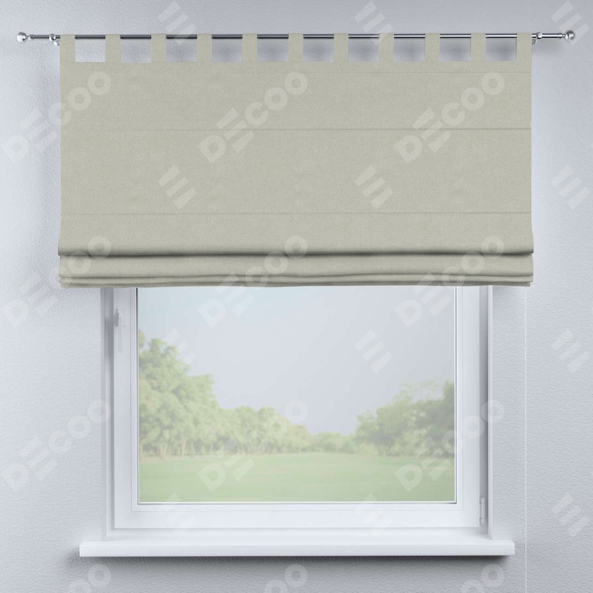 Римская штора производителя «Cortin», используется для проёма, пошита из ткани лён димаут светло-серый, артикул ткани 83025. Данная модель пошита на петлях, комплектуется на выбор круглым карнизом и подходит для монтажа на стену. Римская штора на петлях имеет простую систему регулировки высоты, отличительным преимуществом данной модели является простой способ монтажа. Достаточно повесить ее на трубу и штора готова!
