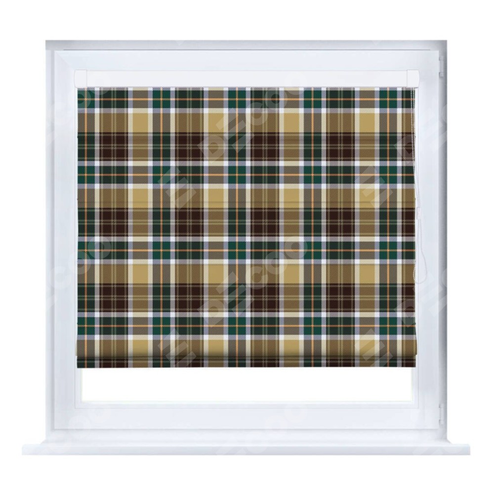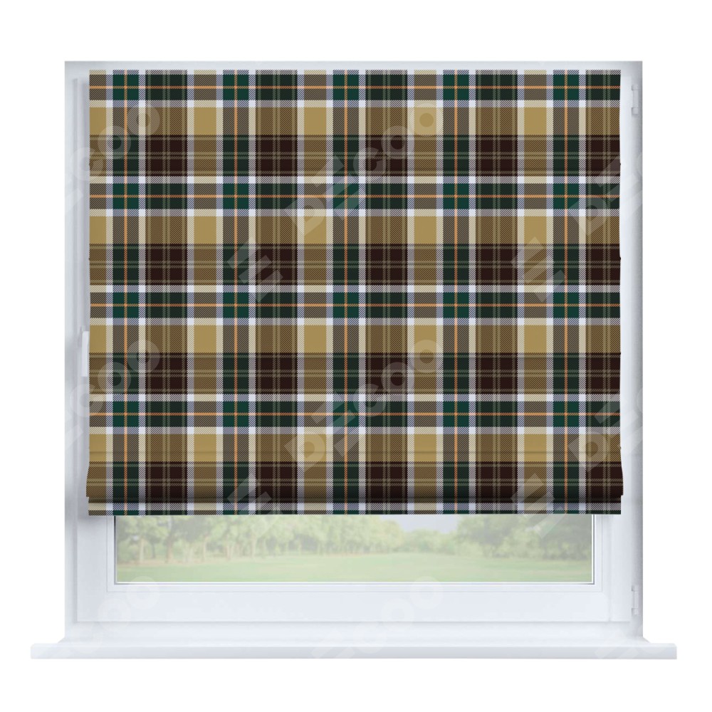 Римская штора производителя «Cortin», устанавливается на створку окна, пошита из ткани блэкаут с нанесением сублимационной печати «Бежево-зелёная клетка». Штора шьётся по индивидуальным размерам, для данного типа римской шторы возможная ширина от 35 до 150 см., высота до 250 см.