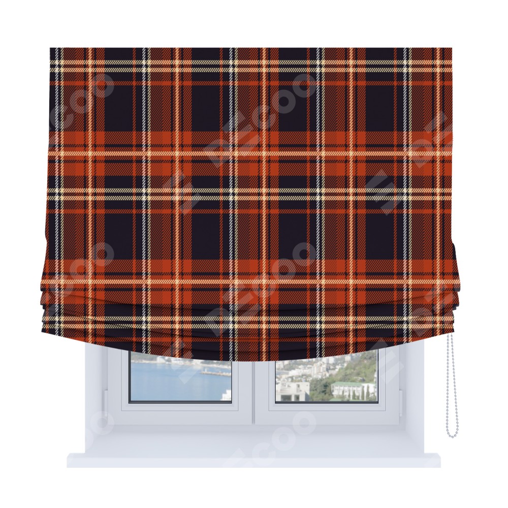 Римская штора Soft с мягкими складками, «Сине-оранжевая клетка»