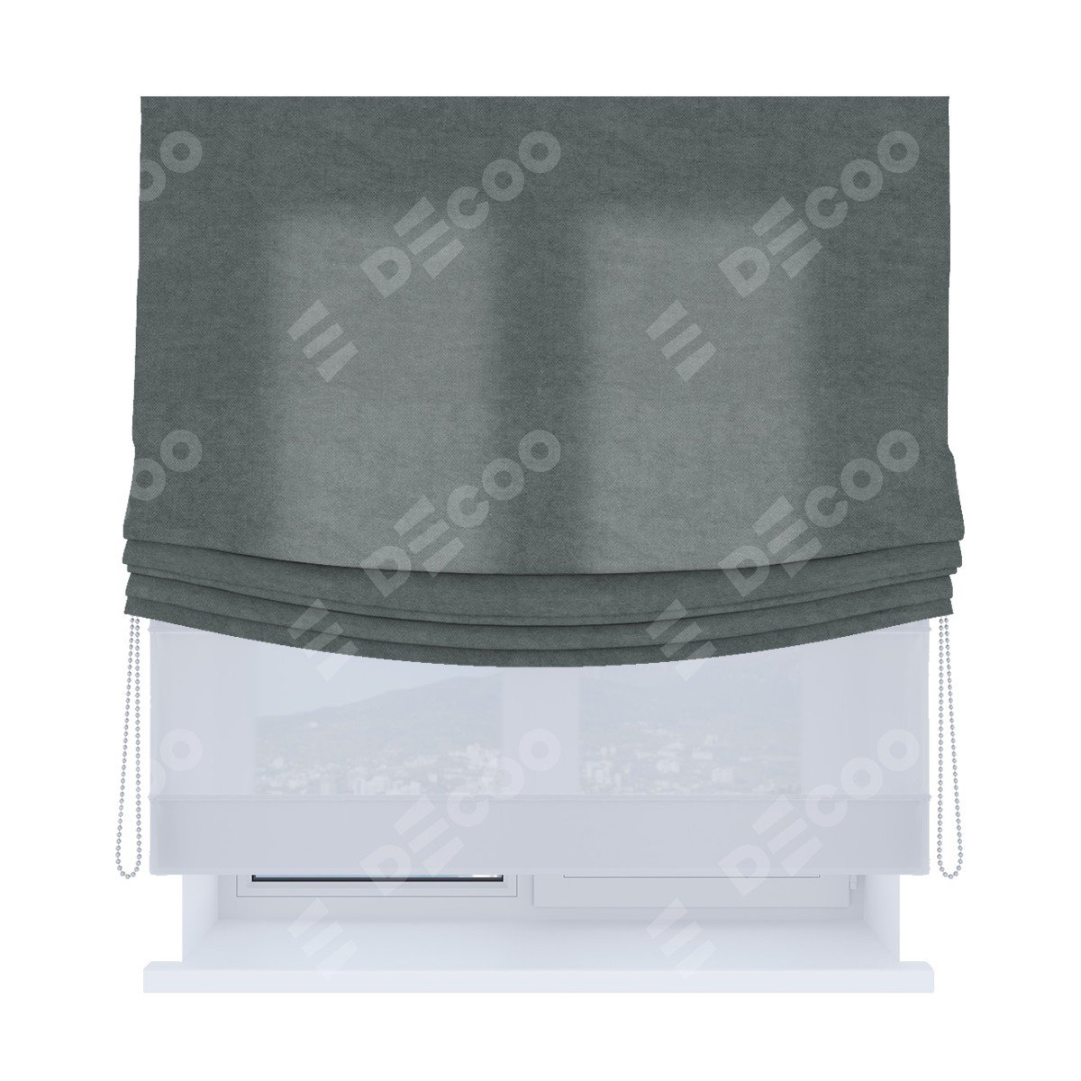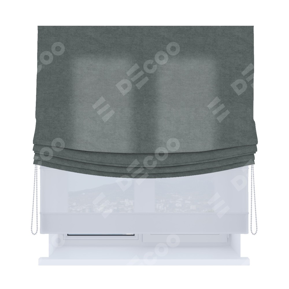 Римская штора день-ночь производителя «Cortin», используется для проёма, пошита из двух полотен, с лицевой стороны вельвет серый артикул 85542, вторая ткань тюль (по стандарту комплектуется тюль белого цвета артикул V-01). Имеет универсальный механизм и подходит для монтажа: на потолок, на стену и в нишу. Удобное управление каждой шторой отдельно.