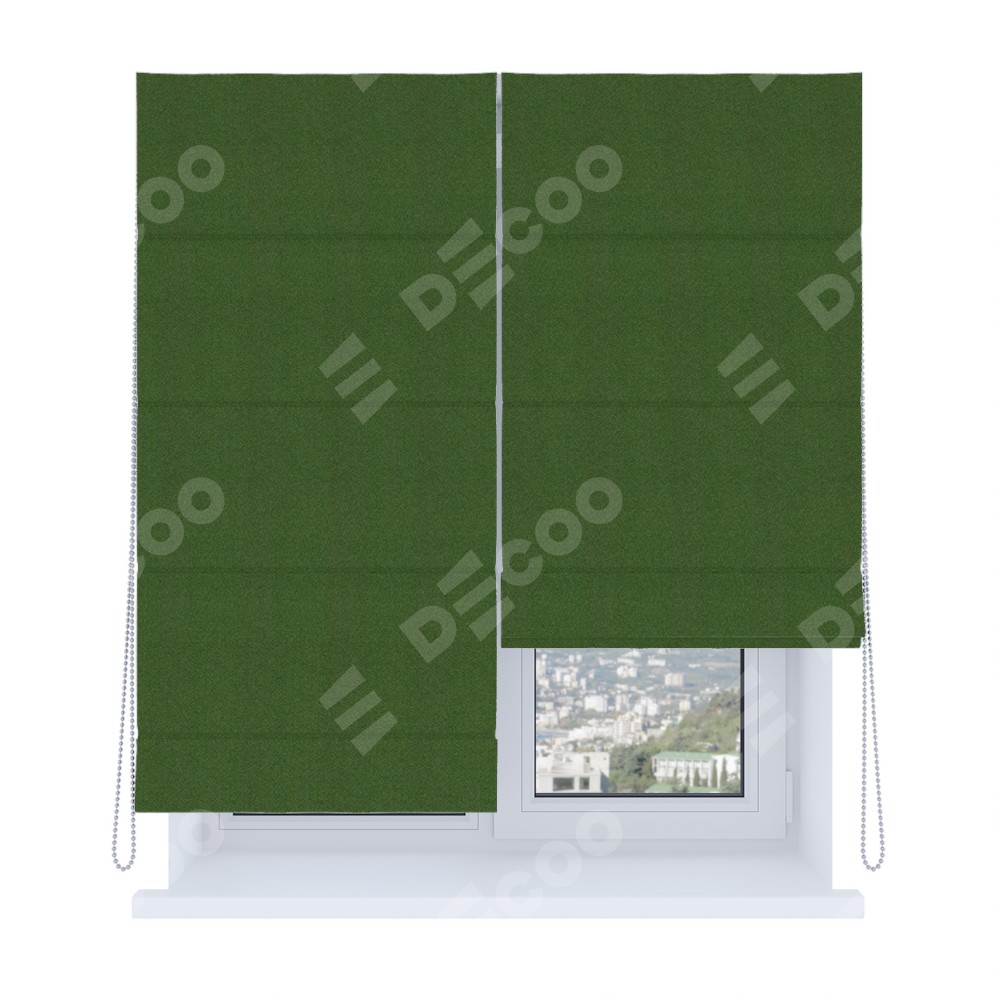 Римская штора «Кортин», система «Комфорт», блэкаут однотонный зелёный перламутр