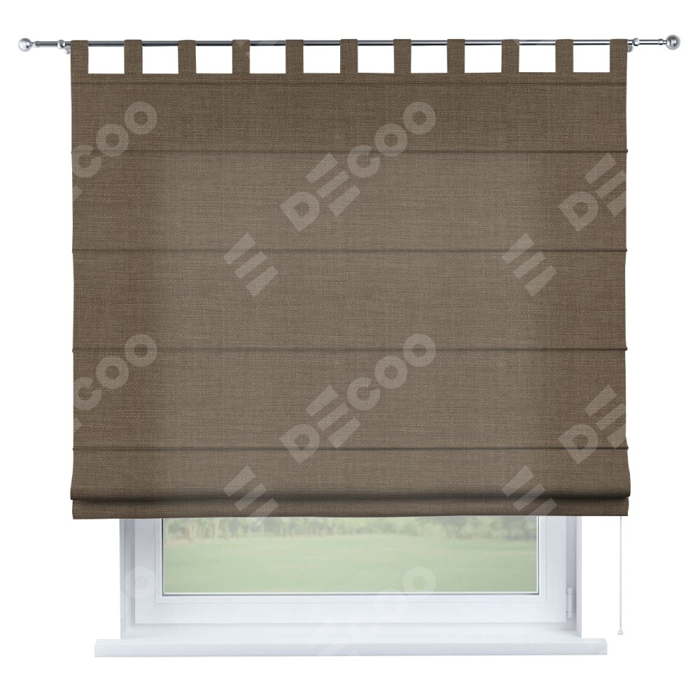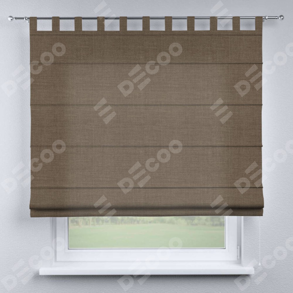 Римская штора производителя «Cortin», используется для проёма, пошита из ткани лён мокко, артикул ткани 7444. Данная модель пошита на петлях, комплектуется на выбор круглым карнизом и подходит для монтажа на стену. Римская штора на петлях имеет простую систему регулировки высоты, отличительным преимуществом данной модели является простой способ монтажа. Достаточно повесить ее на трубу и штора готова!