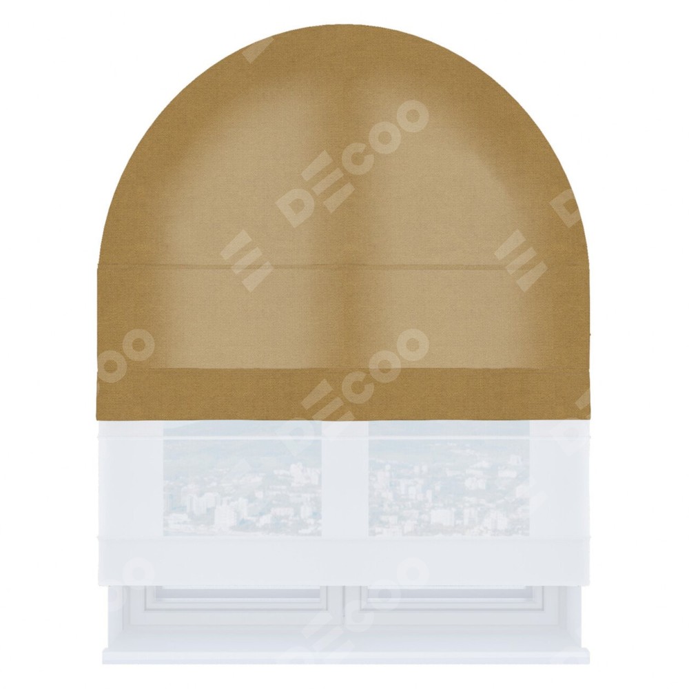Римская штора день-ночь производителя «Cortin», используется для арочного проёма, пошита из двух полотен, с лицевой стороны вельвет горчица артикул 17760, вторая ткань тюль (по стандарту комплектуется тюль белого цвета артикул V-01). Штора шьётся по индивидуальным размерам, для данного типа римской шторы возможная ширина от 60 до 300 см. Удобное управление каждой шторой отдельно.