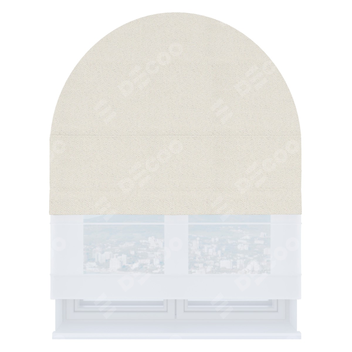 Римская штора день-ночь производителя «Cortin», используется для арочного проёма, пошита из двух полотен, с лицевой стороны блэкаут тиснение с блеском светло-серый артикул 34633, вторая ткань тюль (по стандарту комплектуется тюль белого цвета артикул V-01). Изнаночная сторона основного материала черного цвета, что обеспечивает необходимую светонепроницаемость. Штора шьётся по индивидуальным размерам, для данного типа римской шторы возможная ширина от 60 до 300 см. Удобное управление каждой шторой отдельно.