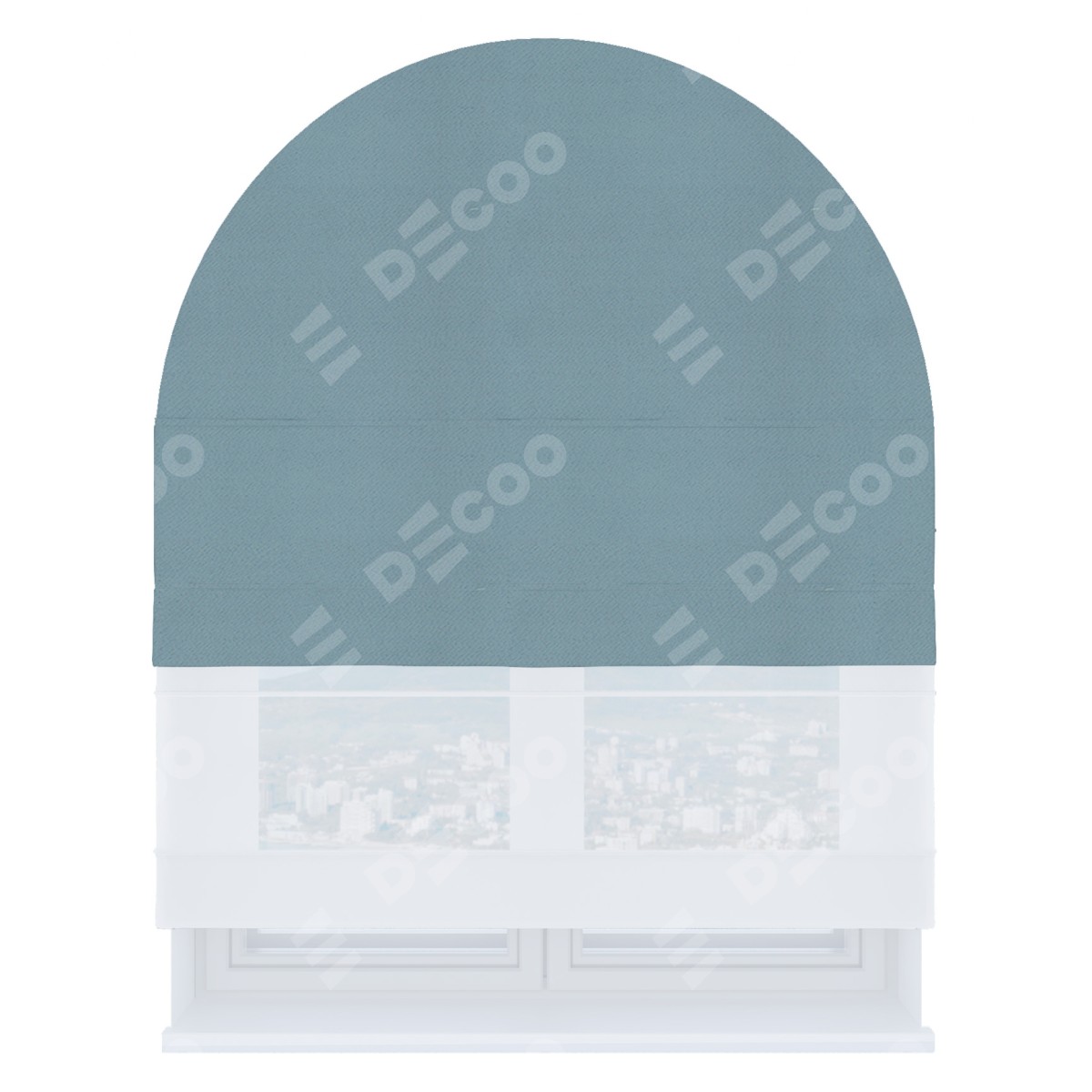 Римская штора день-ночь производителя «Cortin», используется для арочного проёма, пошита из двух полотен, с лицевой стороны блэкаут однотонный серо-голубой артикул 29327−2, вторая ткань тюль (по стандарту комплектуется тюль белого цвета артикул V-01). Штора шьётся по индивидуальным размерам, для данного типа римской шторы возможная ширина от 60 до 300 см. Удобное управление каждой шторой отдельно.