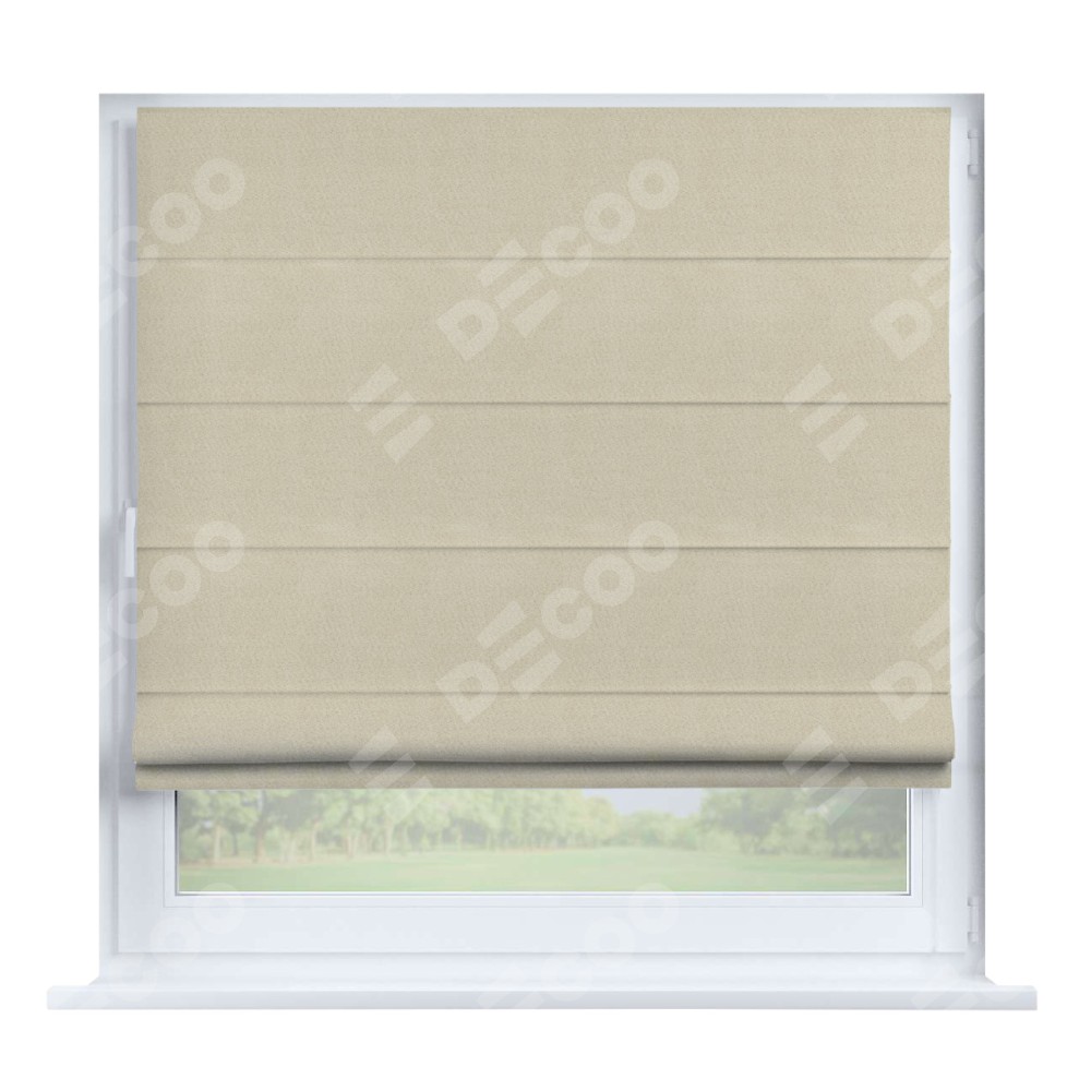 Римская штора производителя «Cortin», устанавливается на створку окна, пошита из ткани блэкаут однотонный бежевый, артикул 13125. Штора шьётся по индивидуальным размерам, для данного типа римской шторы возможная ширина от 35 до 150 см., высота до 250 см.