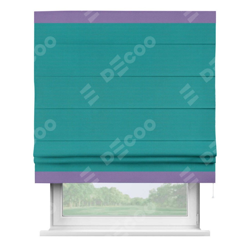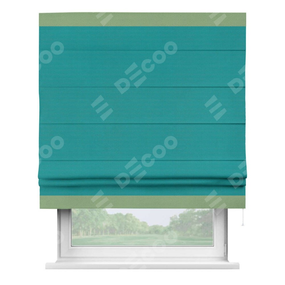 Римская штора «Кортин» с кантом Горизонт, для проема, ткань блэкаут однотонный бирюзовый