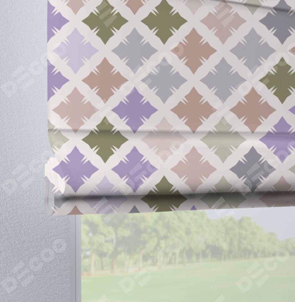 Римская штора производителя «Cortin», используется для проёма, пошита из ткани блэкаут с нанесением сублимационной печати «Фигурные плитки». Данная модель пошита на петлях, комплектуется на выбор круглым карнизом и подходит для монтажа на стену. Римская штора на петлях имеет простую систему регулировки высоты, отличительным преимуществом данной модели является простой способ монтажа. Достаточно повесить ее на трубу и штора готова!