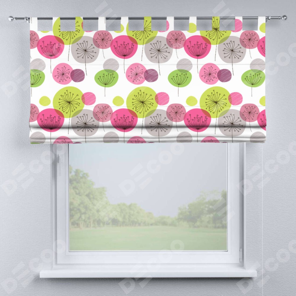 Римская штора производителя «Cortin», используется для проёма, пошита из ткани блэкаут с нанесением сублимационной печати «Цветные одуванчики». Данная модель пошита на петлях, комплектуется на выбор круглым карнизом и подходит для монтажа на стену. Римская штора на петлях имеет простую систему регулировки высоты, отличительным преимуществом данной модели является простой способ монтажа. Достаточно повесить ее на трубу и штора готова!
