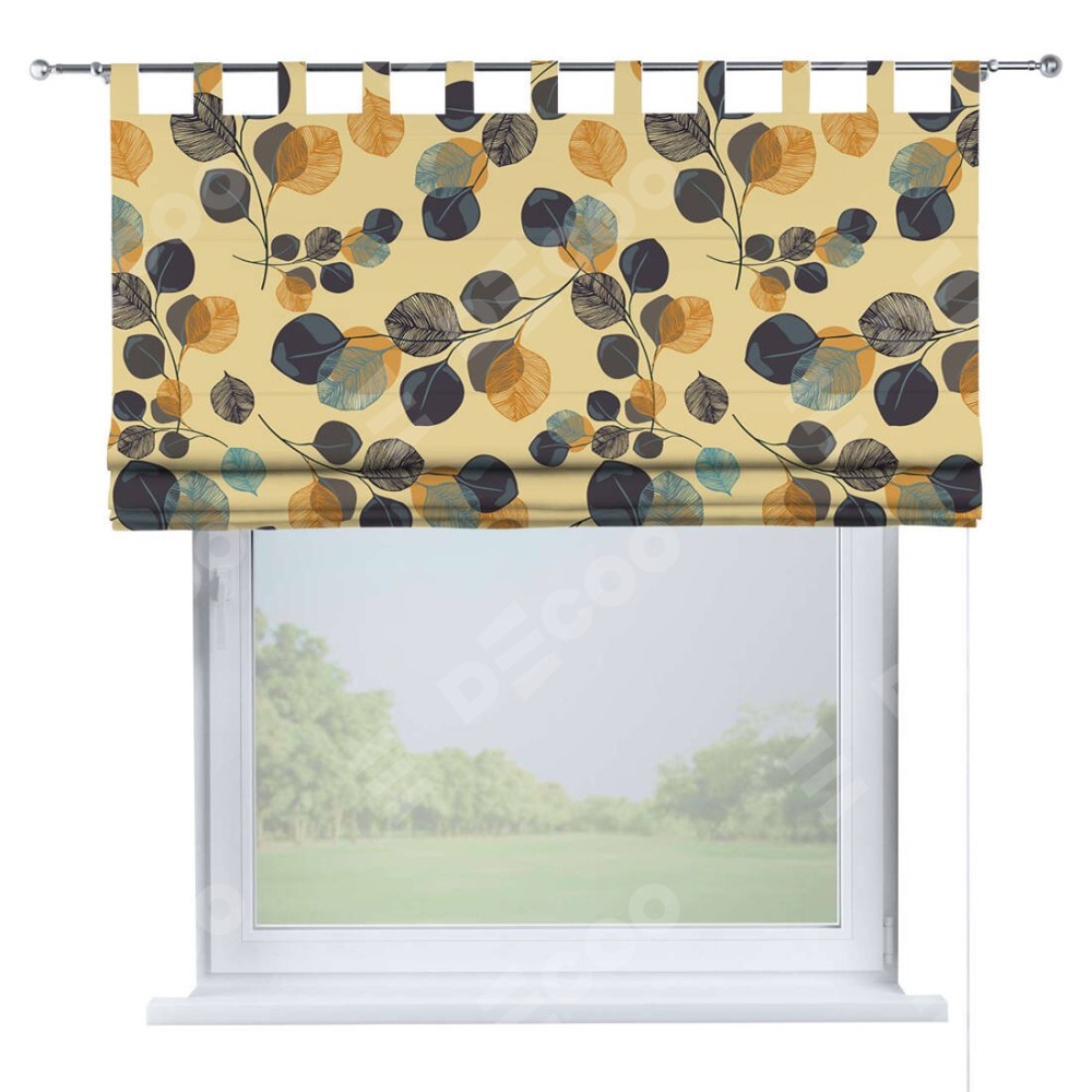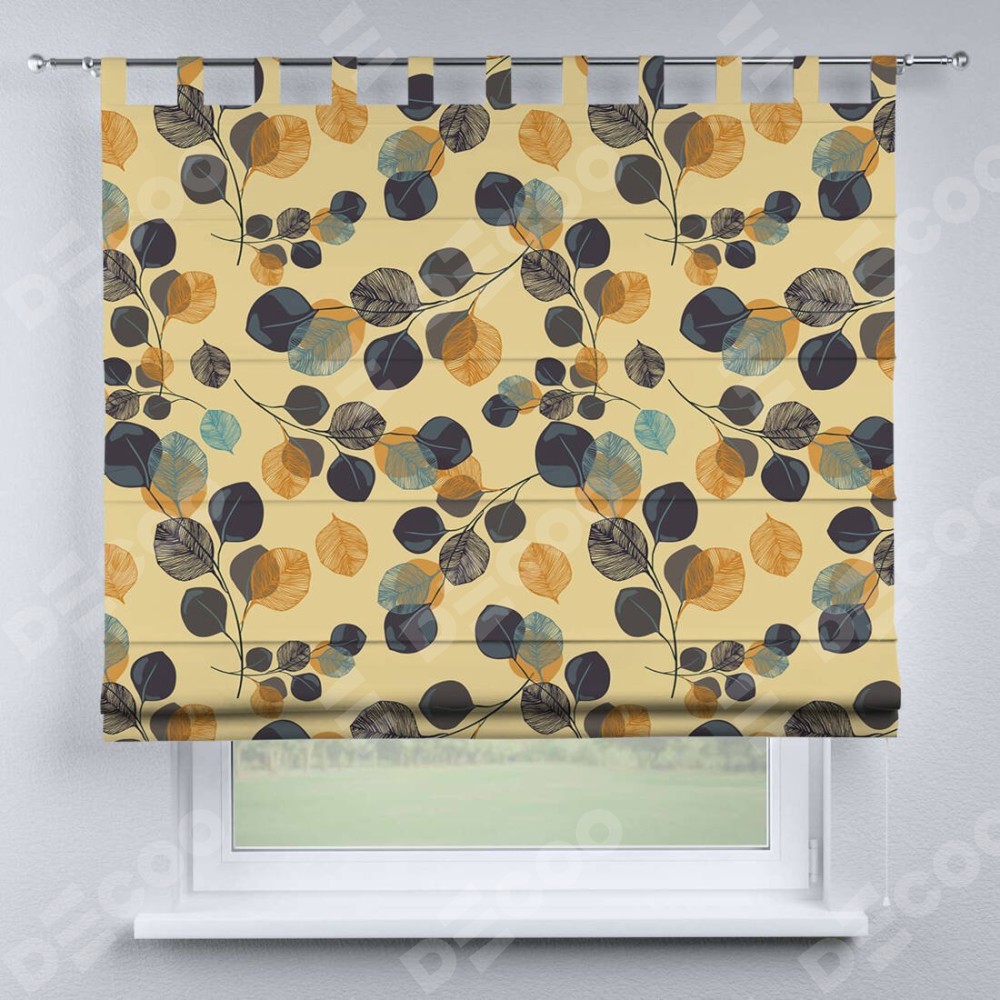 Римская штора производителя «Cortin», используется для проёма, пошита из ткани блэкаут с нанесением сублимационной печати «Листья в янтаре». Данная модель пошита на петлях, комплектуется на выбор круглым карнизом и подходит для монтажа на стену. Римская штора на петлях имеет простую систему регулировки высоты, отличительным преимуществом данной модели является простой способ монтажа. Достаточно повесить ее на трубу и штора готова!