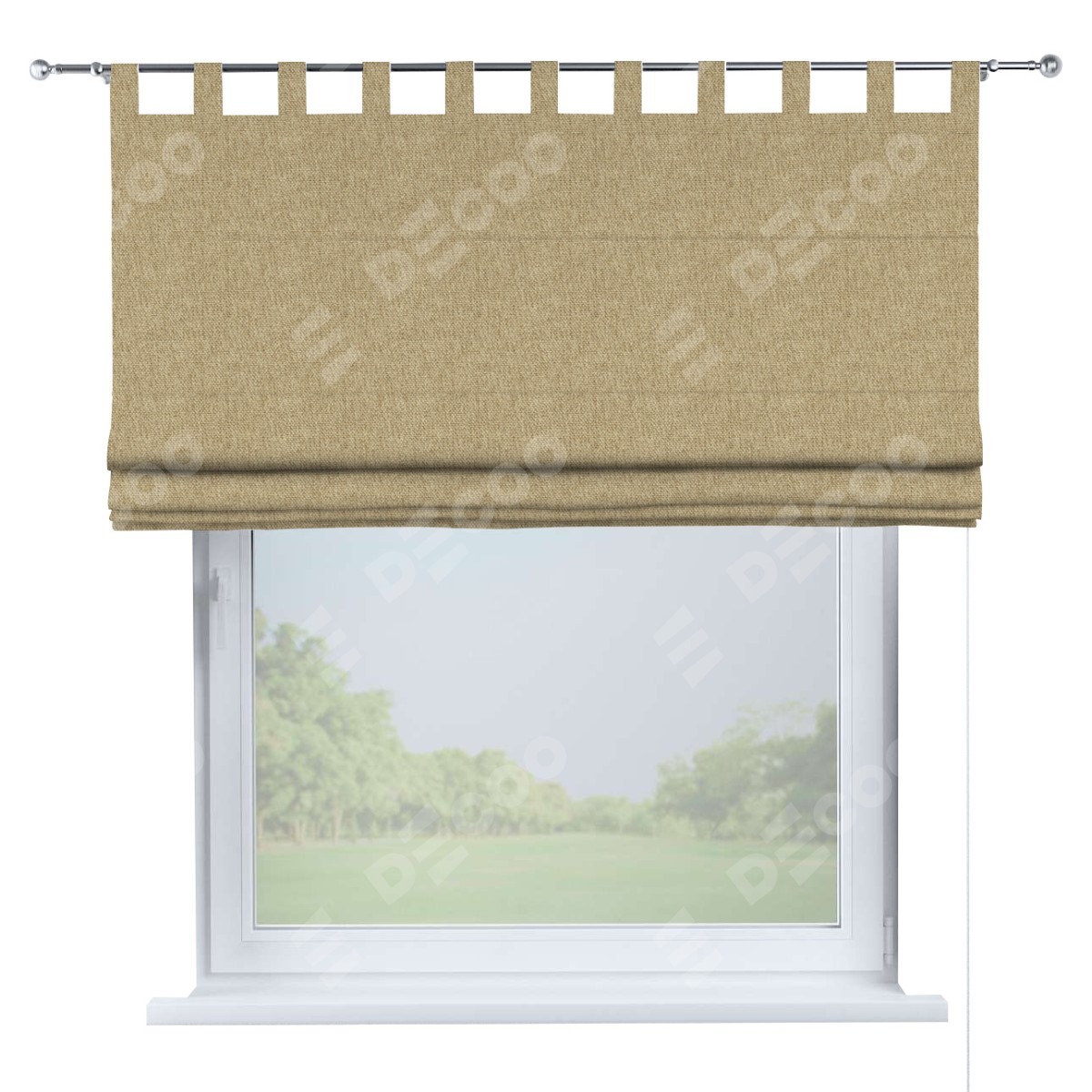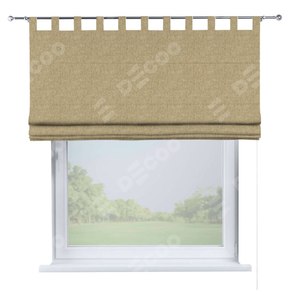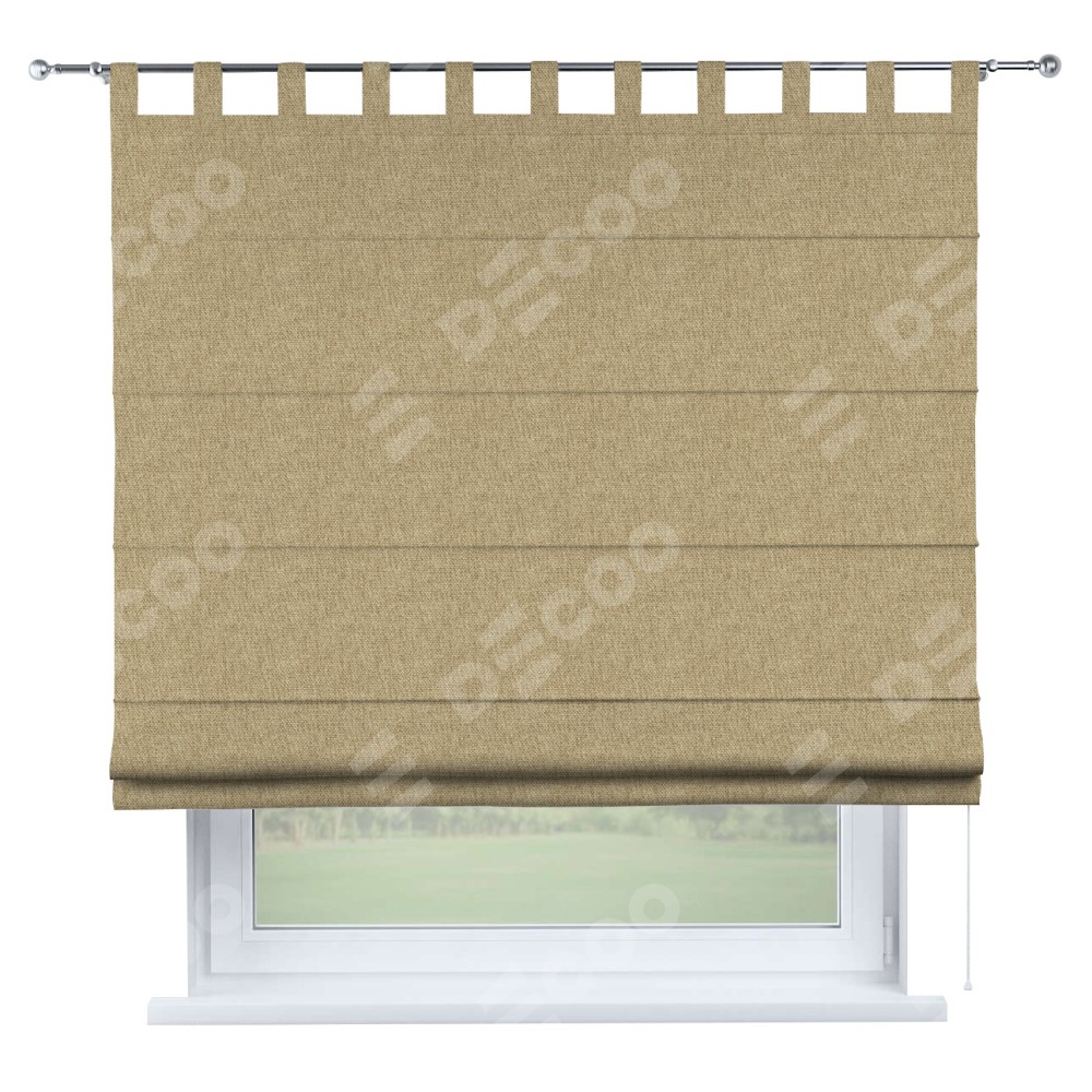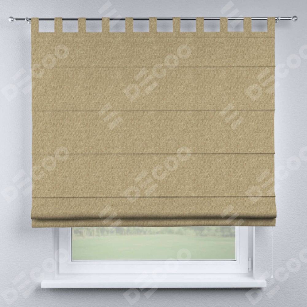Римская штора производителя «Cortin», используется для проёма, пошита из ткани стиф димаут бежевый, артикул ткани 18083. Данная модель пошита на петлях, комплектуется на выбор круглым карнизом и подходит для монтажа на стену. Римская штора на петлях имеет простую систему регулировки высоты, отличительным преимуществом данной модели является простой способ монтажа. Достаточно повесить ее на трубу и штора готова!