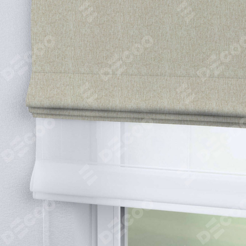 Римская штора день-ночь производителя «Cortin», используется для проёма, пошита из двух полотен, с лицевой стороны стиф димаут светло-бежевый артикул 18084, вторая ткань тюль (по стандарту комплектуется тюль белого цвета артикул V-01). Имеет универсальный механизм и подходит для монтажа: на потолок, на стену и в нишу.