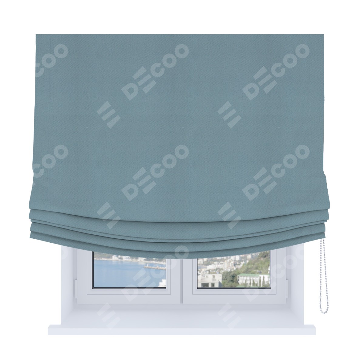 Римская штора Soft производителя «Cortin», используется для проёма, пошита из ткани блэкаут однотонный серо-голубой, артикул ткани 29327−2. Имеет универсальный механизм и подходит для монтажа: на потолок, на стену и в нишу. В отличие от стандартных римских штор, римская штора Soft не имеет горизонтальных вставок и нижнего отвеса. Это позволяет ткани произвольно драпироваться в свободные мягкие складки.