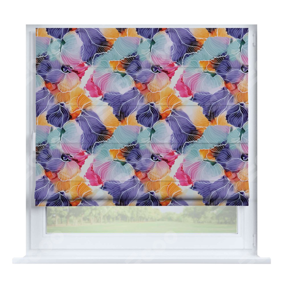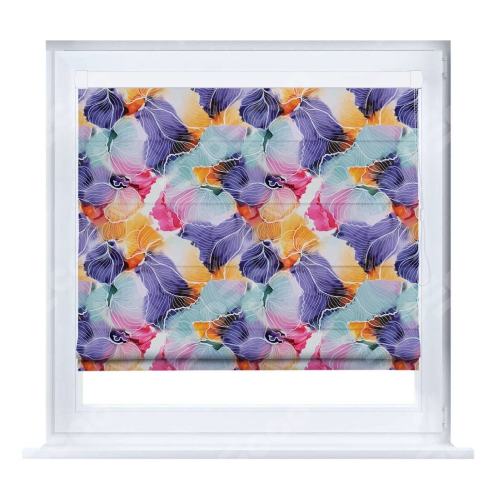Римская штора производителя «Cortin», устанавливается на створку окна, пошита из ткани блэкаут с нанесением сублимационной печати «Роскошные ирисы». Штора шьётся по индивидуальным размерам, для данного типа римской шторы возможная ширина от 35 до 150 см., высота до 250 см.