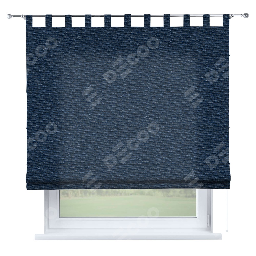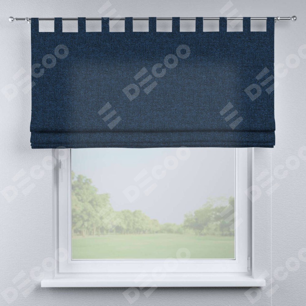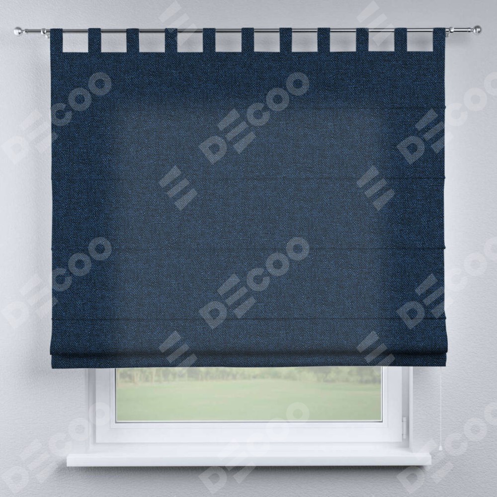 Римская штора на петлях «Кортин», ткань лён кашемир тёмно-синий