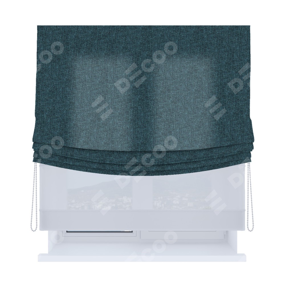 Римская штора «Кортин», день-ночь с мягкими складками, лён кашемир синий