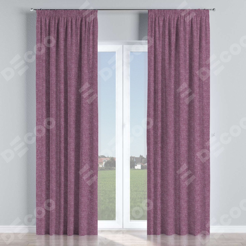 Комплект прямых штор, от производителя «Cortin», пошиты из ткани лён кашемир сиреневый, артикул ткани 21620. С изнаночной стороны в верхней части штор пристрачивается шторная лента с декоративными складками «Карандаш». Для создания элегантных складок прямые шторы шьются по стандарту с коэффициентом 1:2 (на 100 см. ширины проёма 200 см. ширины ткани).
