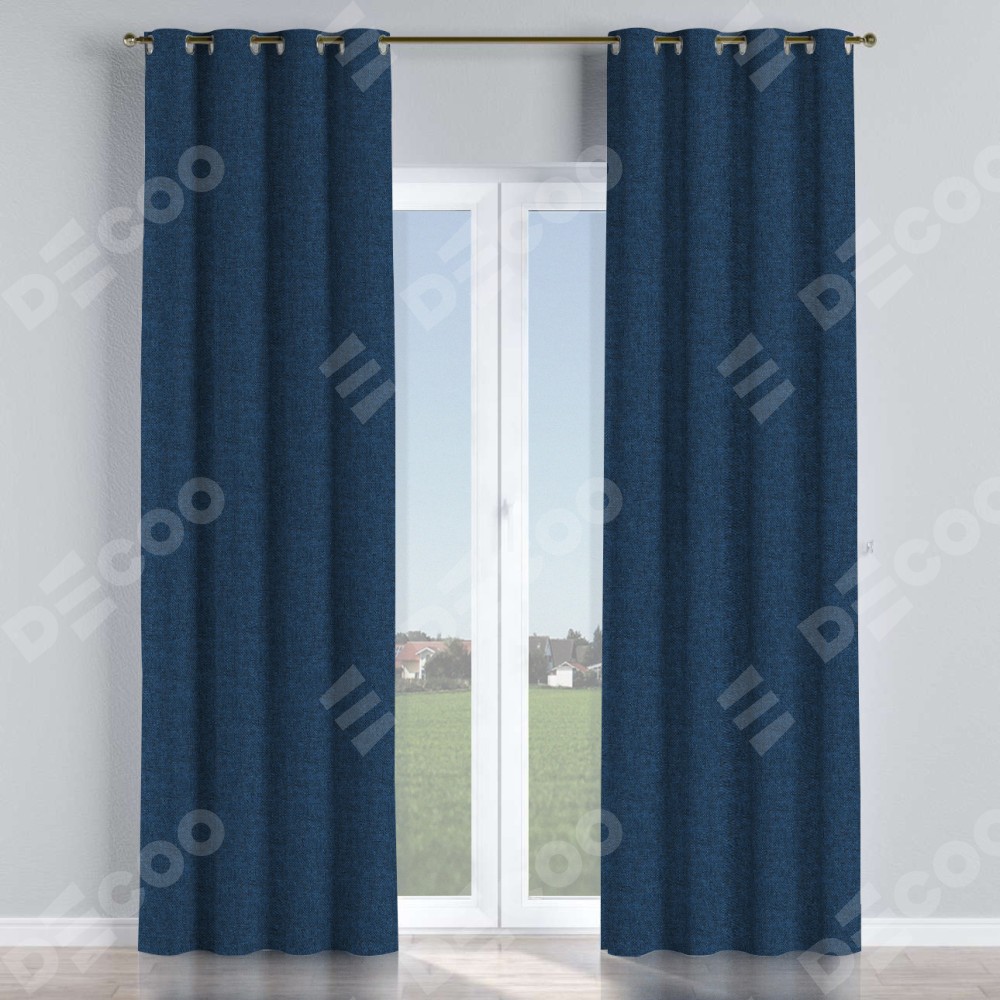 Комплект прямых штор, от производителя «Cortin», пошиты из ткани лён кашемир тёмно-синий, артикул ткани 17215. Данная модель пошита на люверсах, комплектуется на выбор круглым карнизом и подходит для монтажа на стену или потолок. Прямые шторы на люверсах шьются по стандарту с коэффициентом 1/2 (на 100 см. ширины проёма 200 см. ширины ткани), отличительным преимуществом данной модели является простой способ монтажа. Достаточно повесить ее на трубу и штора готова!