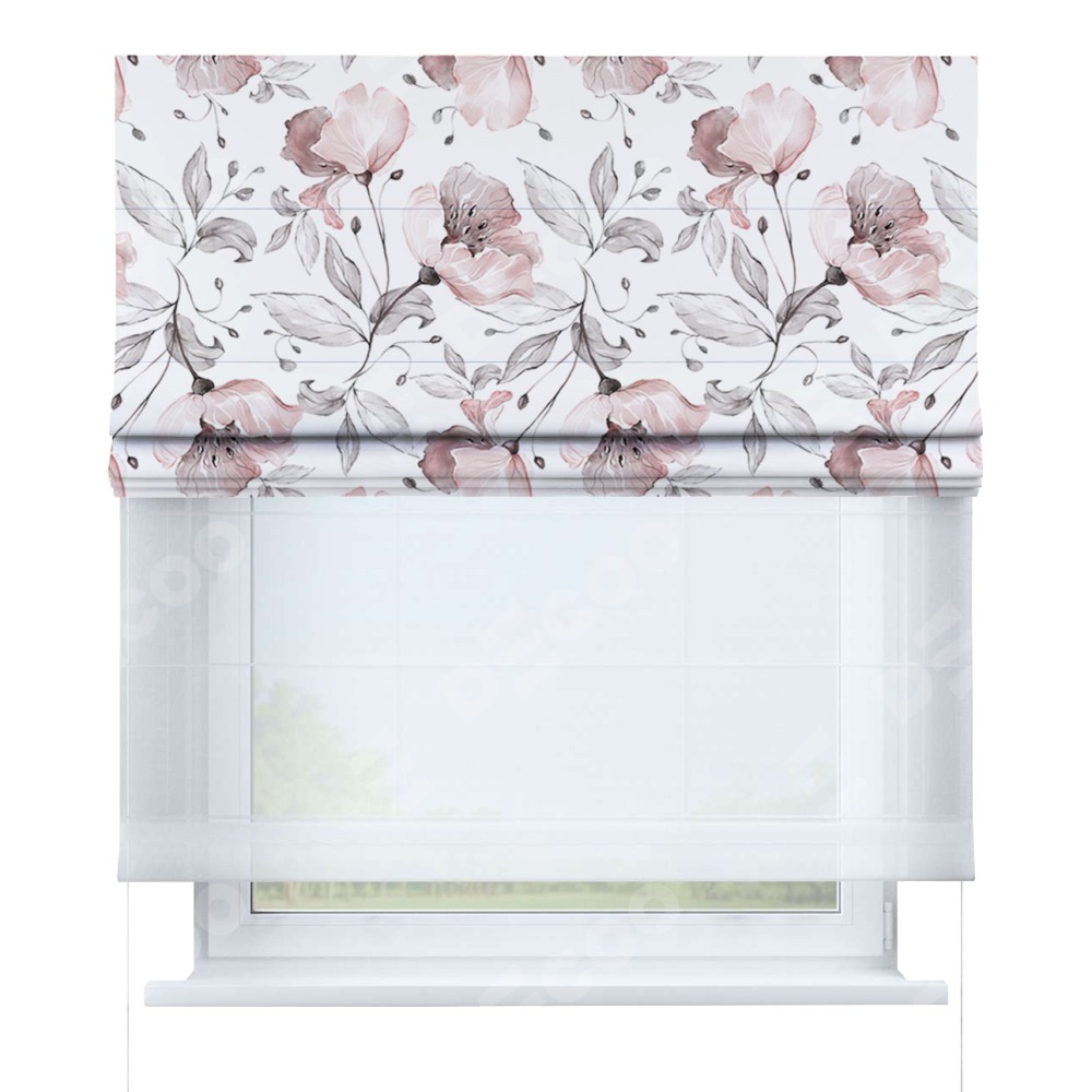 Римская штора день-ночь производителя «Cortin», используется для проёма, пошита из двух полотен, с лицевой блэкаут с нанесением сублимационной печати «Бежевая лагуна», вторая ткань тюль (по стандарту комплектуется тюль белого цвета артикул V-01). Имеет универсальный механизм и подходит для монтажа: на потолок, на стену и в нишу.
