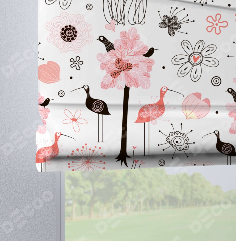 Римская штора на петлях «Любопытные птички»