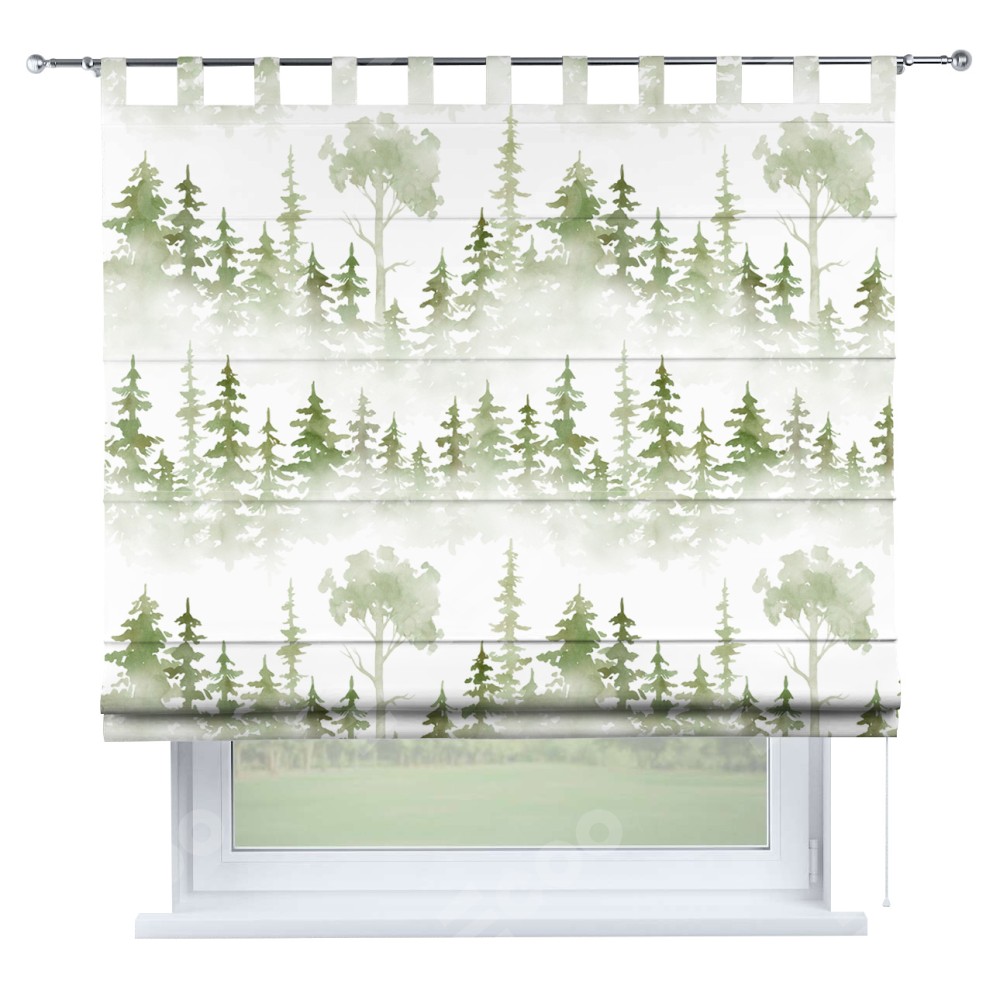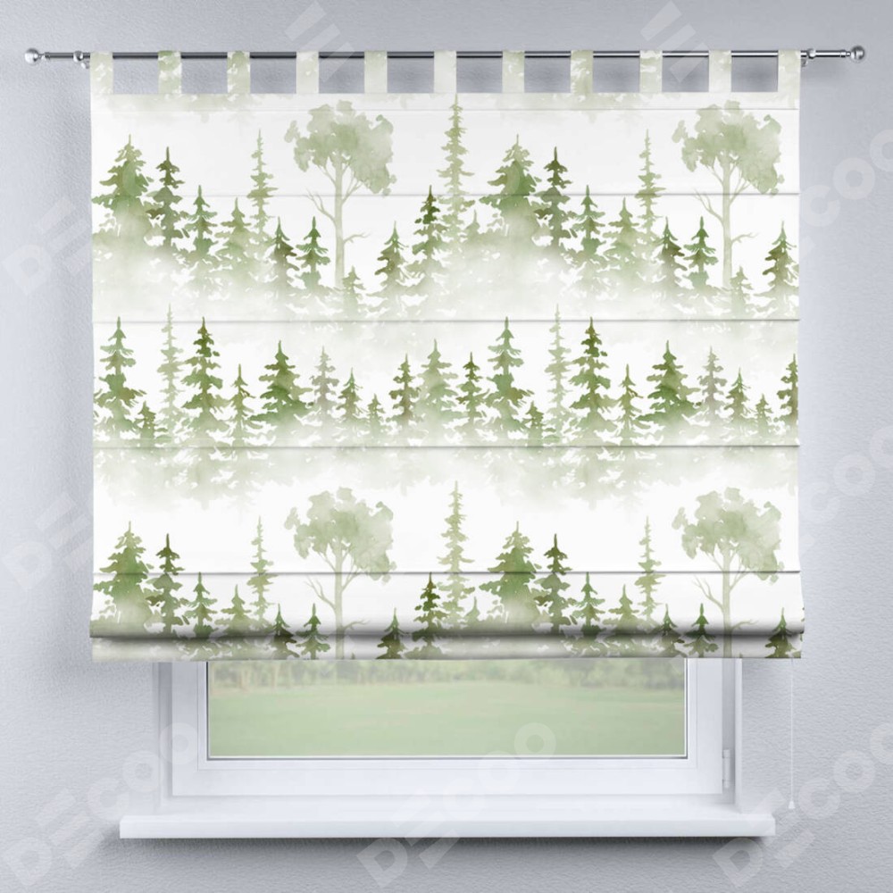 Римская штора производителя «Cortin», используется для проёма, пошита из ткани блэкаут с нанесением сублимационной печати «Туманный лес». Данная модель пошита на петлях, комплектуется на выбор круглым карнизом и подходит для монтажа на стену. Римская штора на петлях имеет простую систему регулировки высоты, отличительным преимуществом данной модели является простой способ монтажа. Достаточно повесить ее на трубу и штора готова!