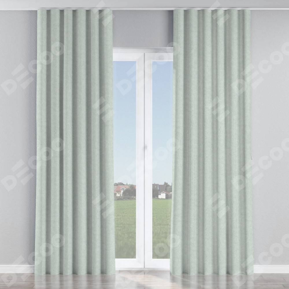 Комплект прямых штор, от производителя «Cortin», пошиты из ткани лён блэкаут белый, артикул ткани 69451. С изнаночной стороны в верхней части штор пристрачивается шторная лента с декоративными складками «Волна». Для создания элегантных складок прямые шторы шьются по стандарту с коэффициентом 1:2 (на 100 см. ширины проёма 200 см. ширины ткани).