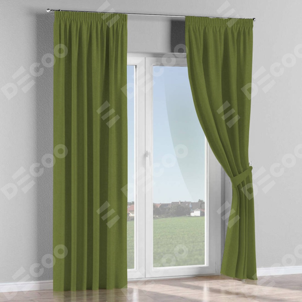 Комплект штор на тесьме «Карандаш», лён блэкаут оливковый