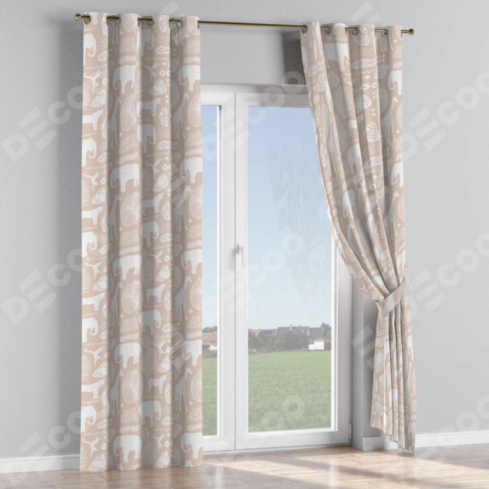 Комплект прямых штор, от производителя «Cortin», пошиты из ткани блэкаут с нанесением сублимационной печати «Африканские животные». Данная модель пошита на люверсах, комплектуется на выбор круглым карнизом и подходит для монтажа на стену или потолок. Прямые шторы на люверсах шьются по стандарту с коэффициентом 1/2 (на 100 см. ширины проёма 200 см. ширины ткани), отличительным преимуществом данной модели является простой способ монтажа. Достаточно повесить ее на трубу и штора готова!